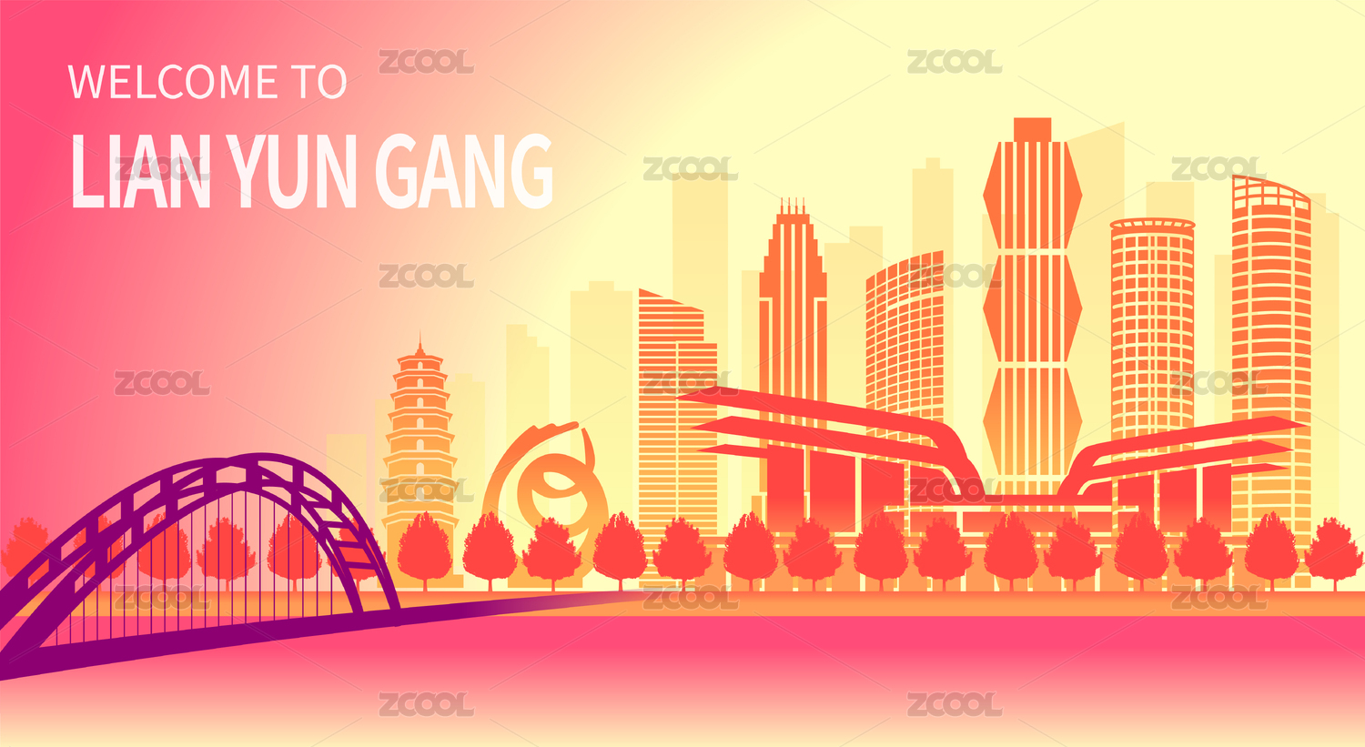 中國江蘇省連云港市商務(wù)城市彩色插畫