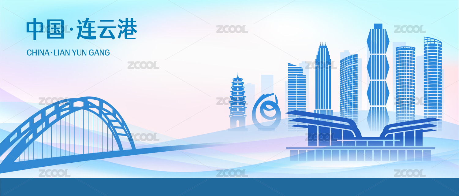 中國江蘇省連云港市地標(biāo)建筑剪影城市會議背景