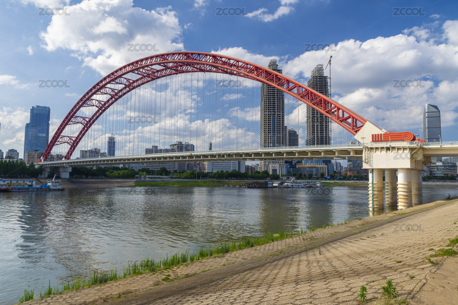 中國(guó)湖北武漢江漢上面的晴川橋近景