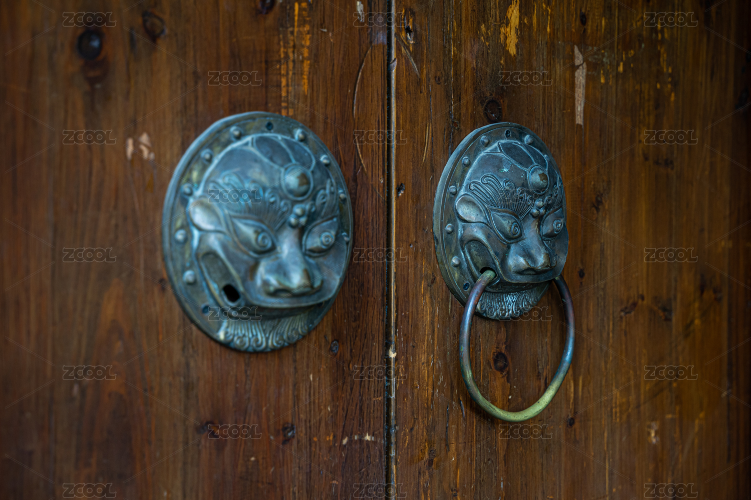 老舊傳統(tǒng)的木質(zhì)門與銅鎖