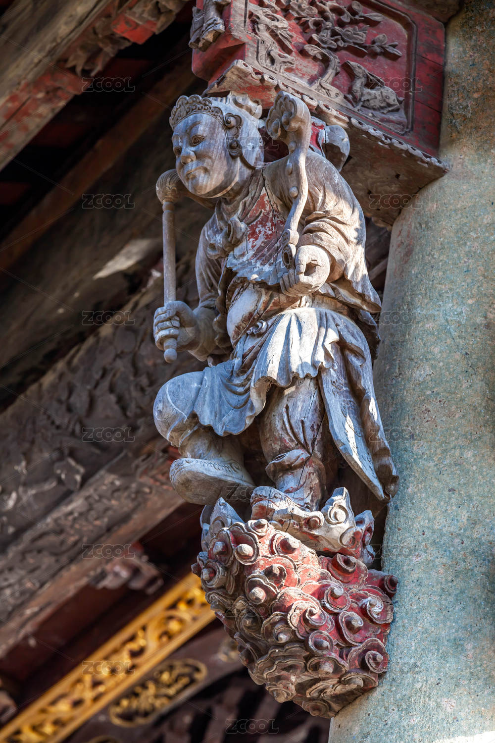 中式古建筑上的木刻牛腿