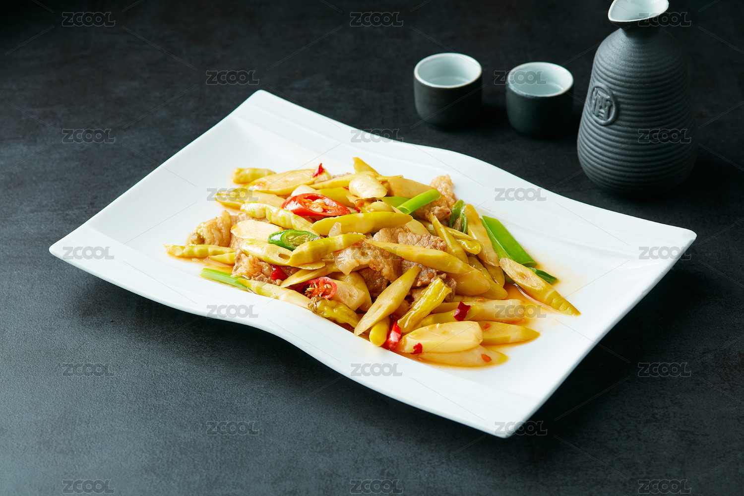 中國(guó)美食湘菜小炒煙筍炒臘肉