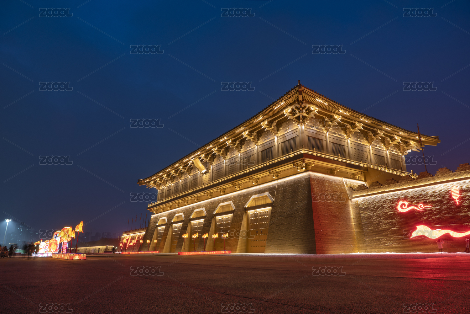 西安大明宮丹鳳門古建筑風(fēng)光夜景