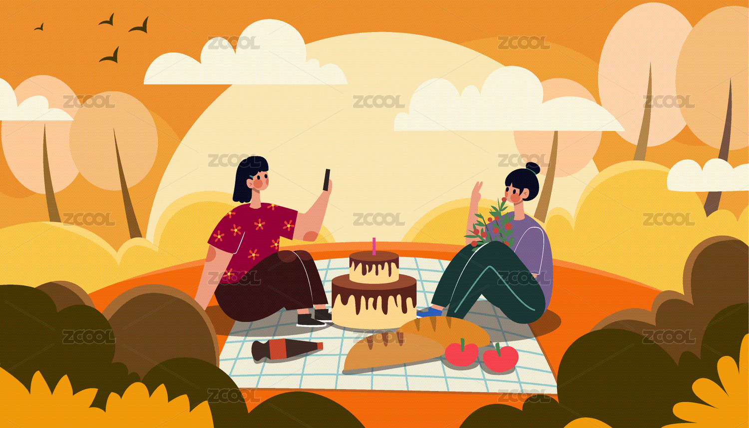 好朋友相約去秋游