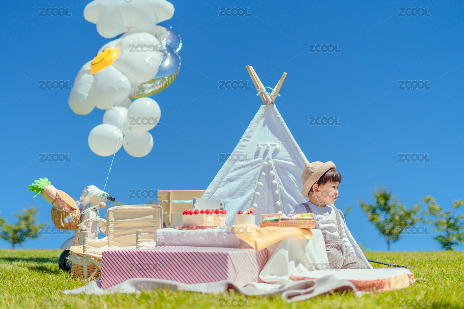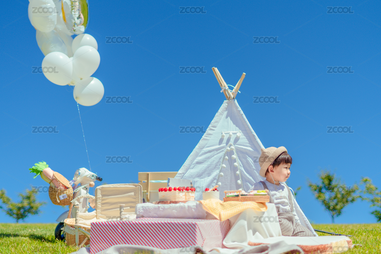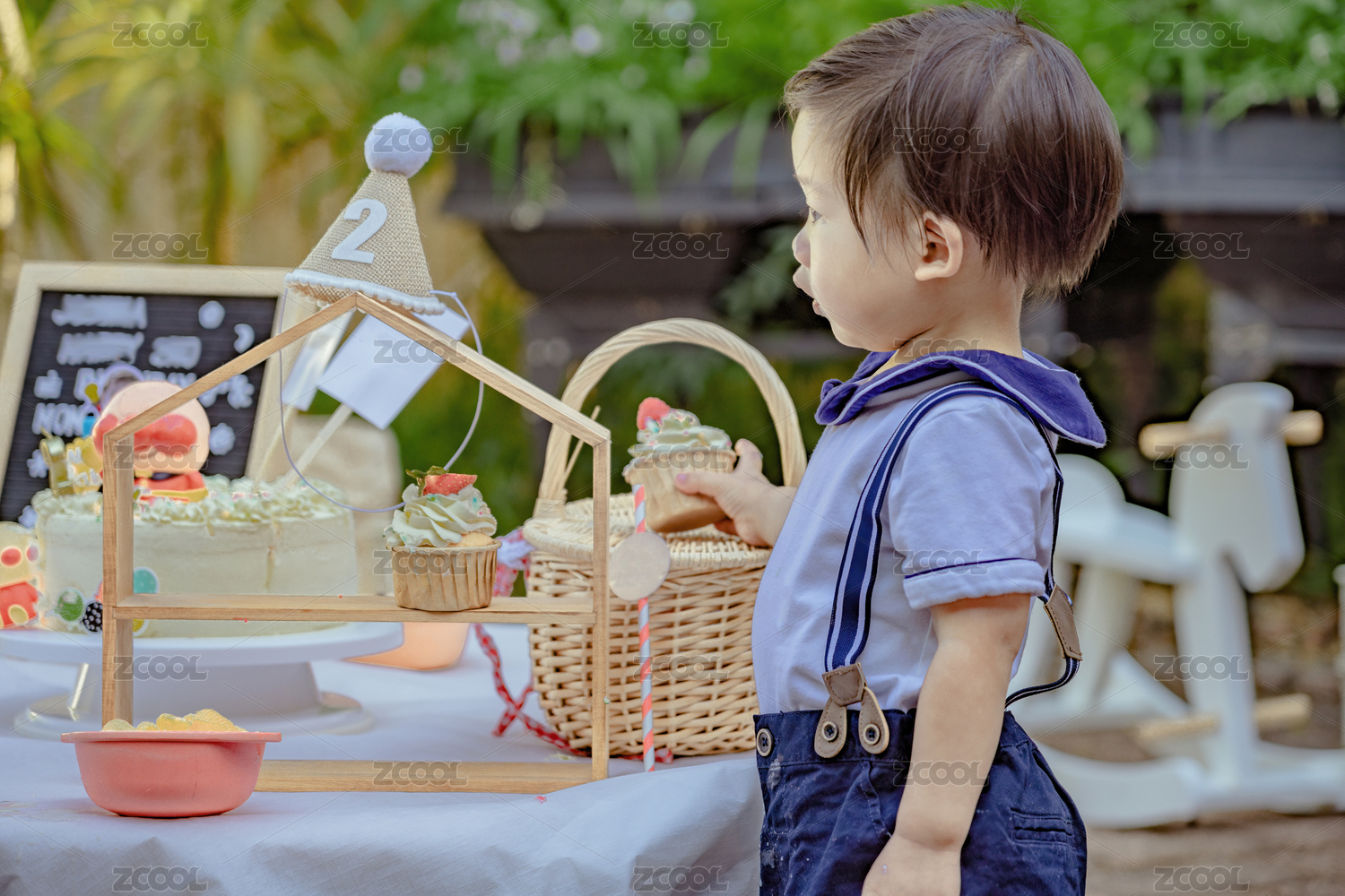 生日野餐派對(duì)上快樂(lè)的小男孩