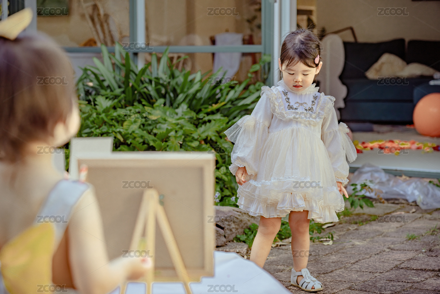 生日野餐派對(duì)上快樂(lè)的小女孩