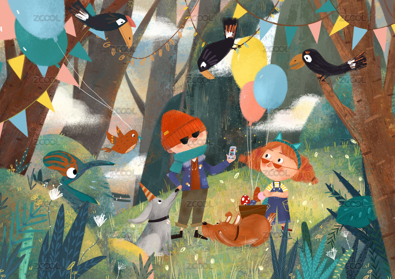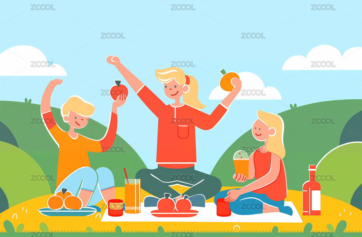 生日野餐派對(duì)上快樂(lè)的孩子們
