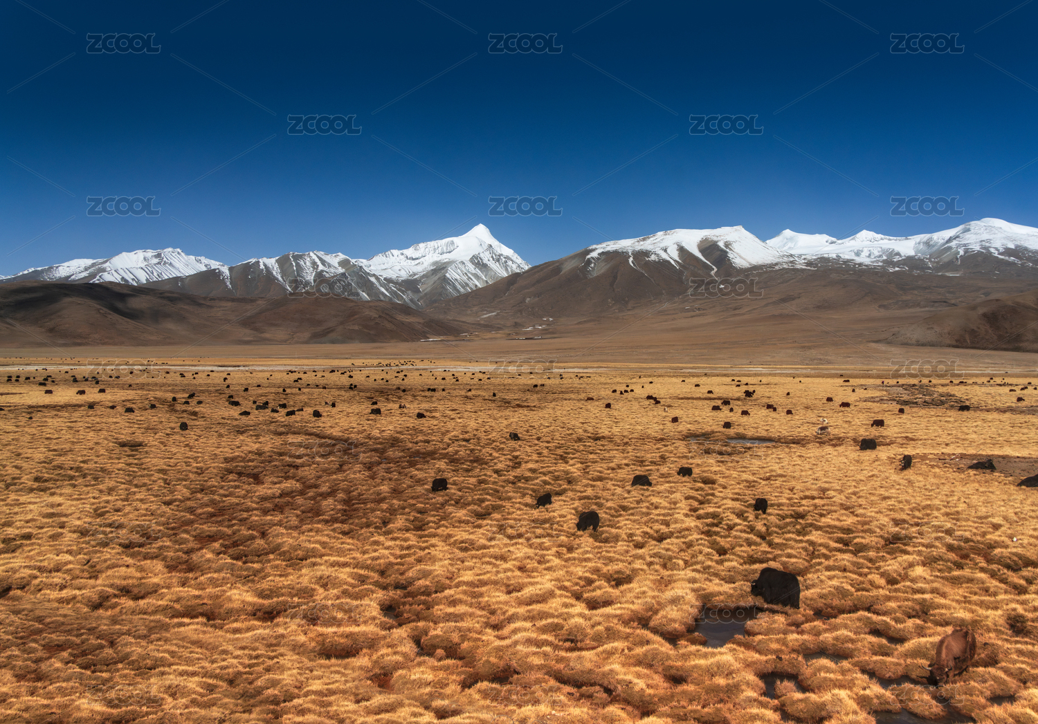 中國(guó)西藏念青唐古拉山下的羌塘草原風(fēng)光