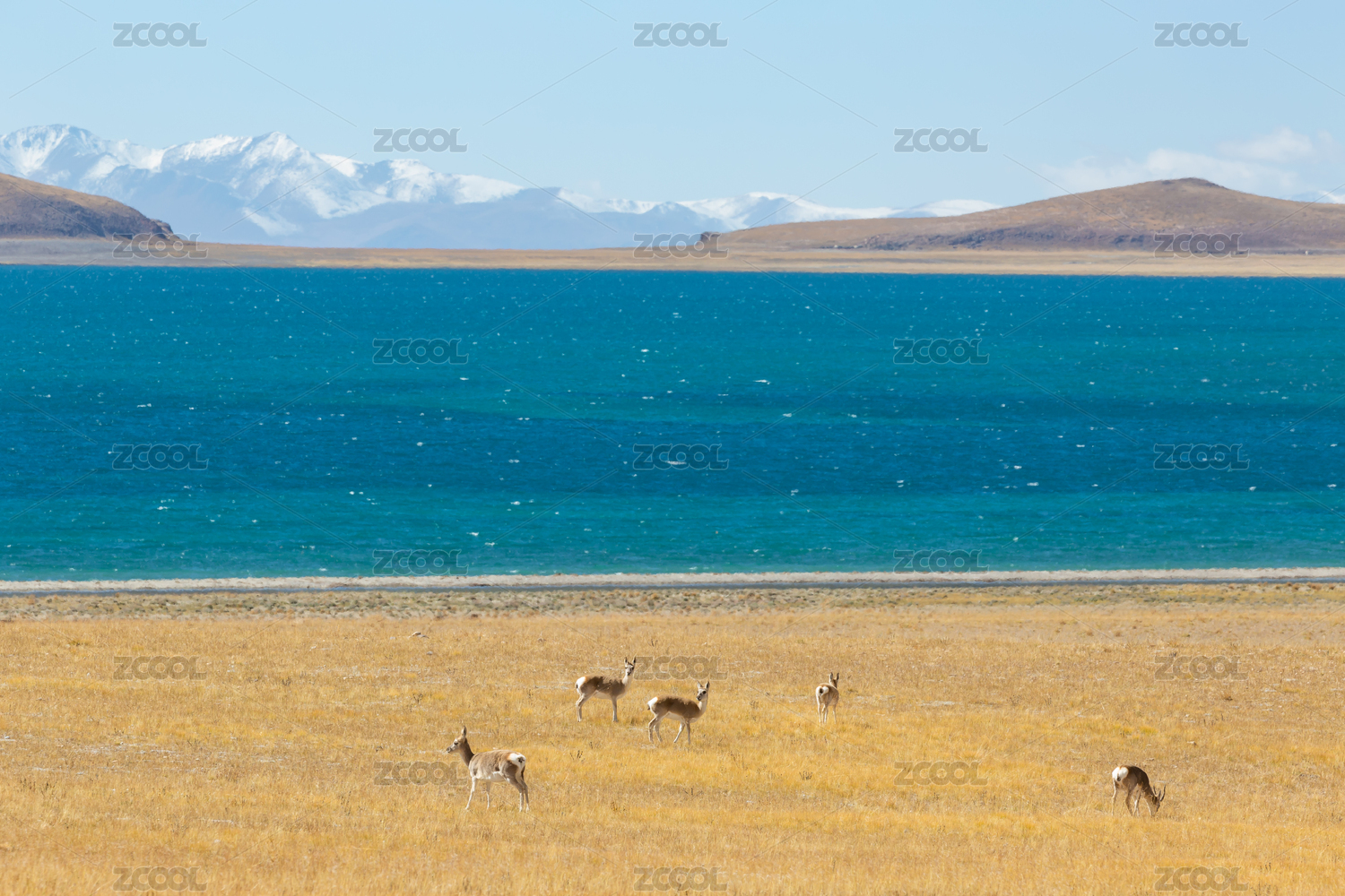 中國(guó)西藏納木錯(cuò)邊的藏原羚,遠(yuǎn)處念青唐古拉