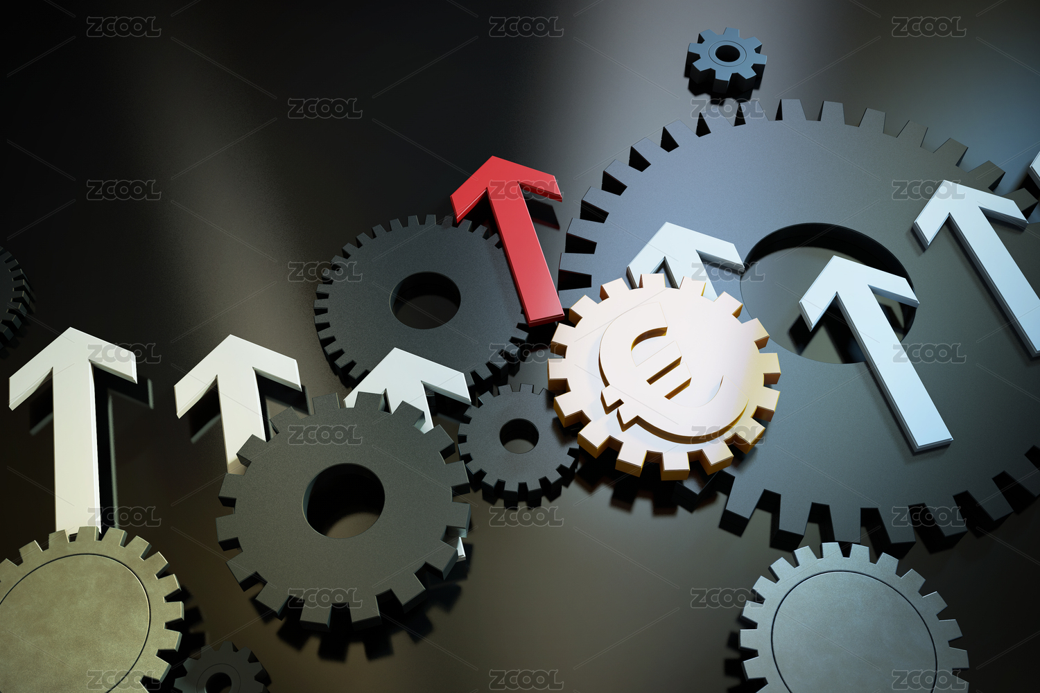 事業(yè)發(fā)展箭頭與歐元符號(hào)齒輪