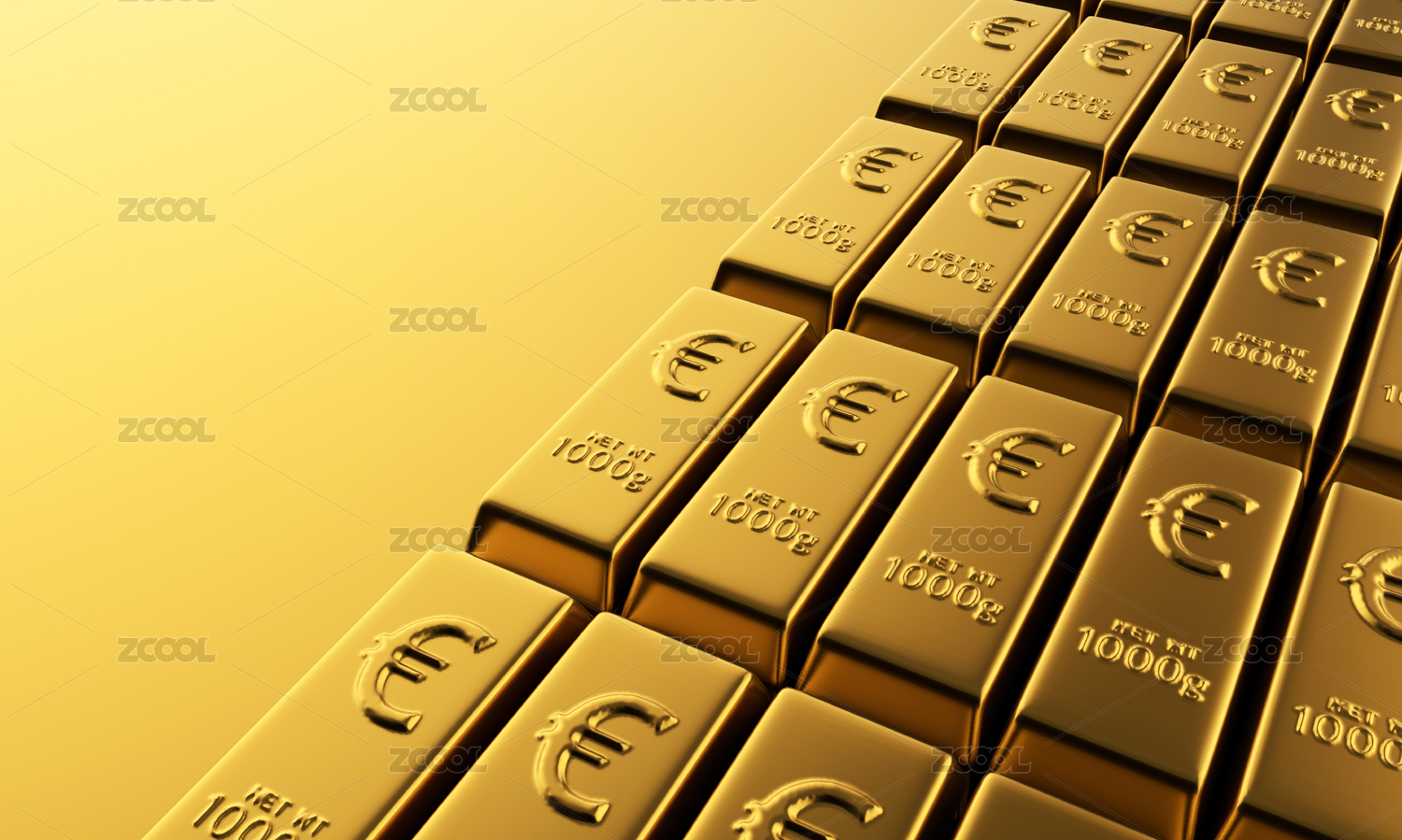 歐元符號(hào)與金條,黃金歐元經(jīng)濟(jì)與資本投資