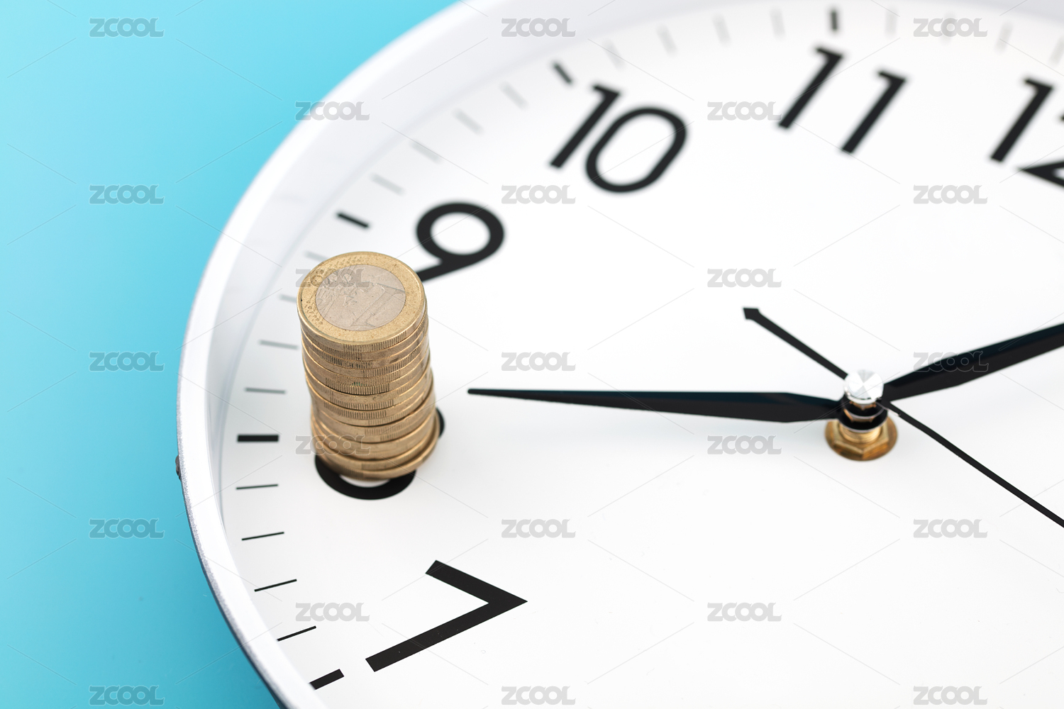 時(shí)間就是金錢(qián)表針指著歐元硬幣