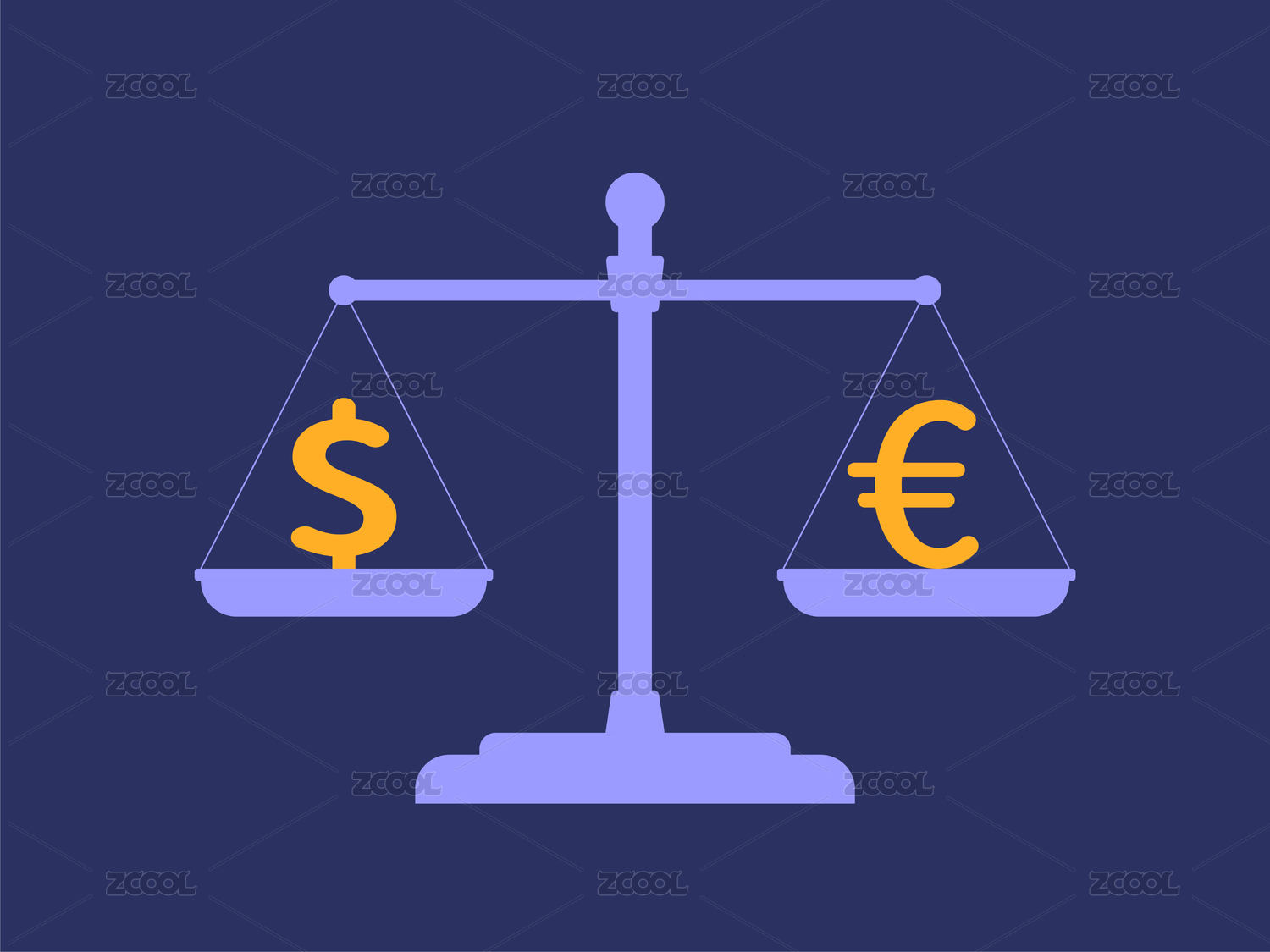 平衡天平上的美元?dú)W元標(biāo)志商務(wù)金融矢量插畫(huà)