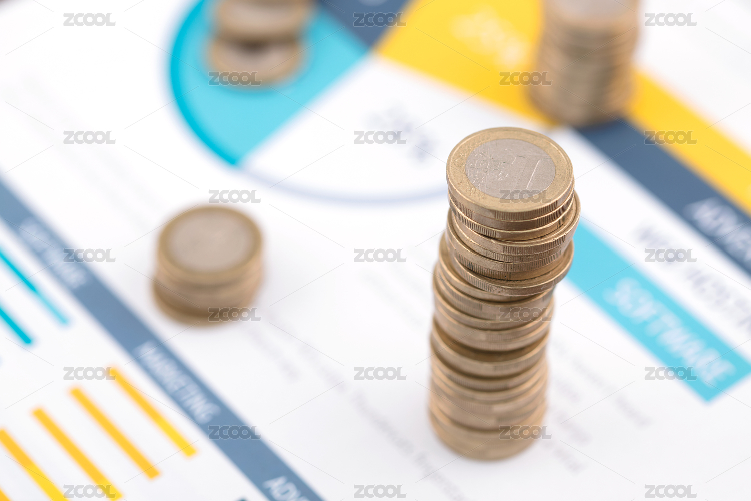 歐元硬幣在金融文件上
