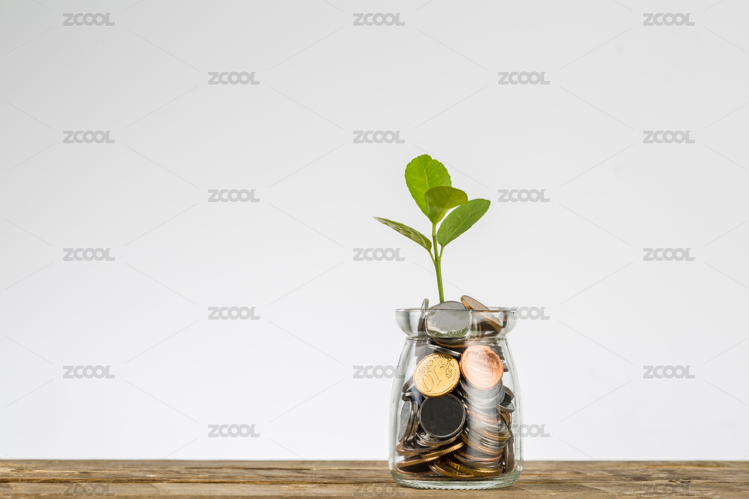 玻璃瓶中的硬幣和綠樹(shù)。 經(jīng)濟(jì)和金融增長(zhǎng)。 美元,歐元。
