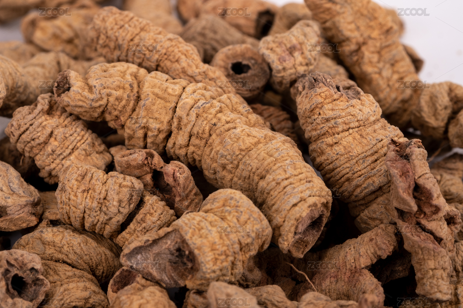 白色桌面上的一堆廣東巴戟天