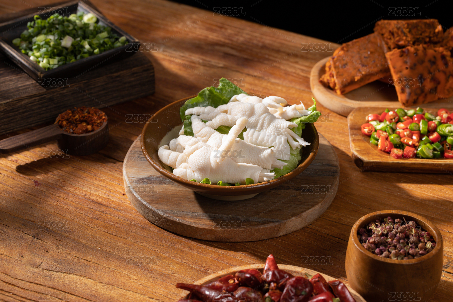 土碗里的川渝火鍋配菜品無骨雞爪鳳爪