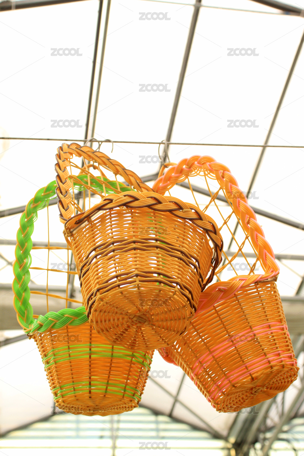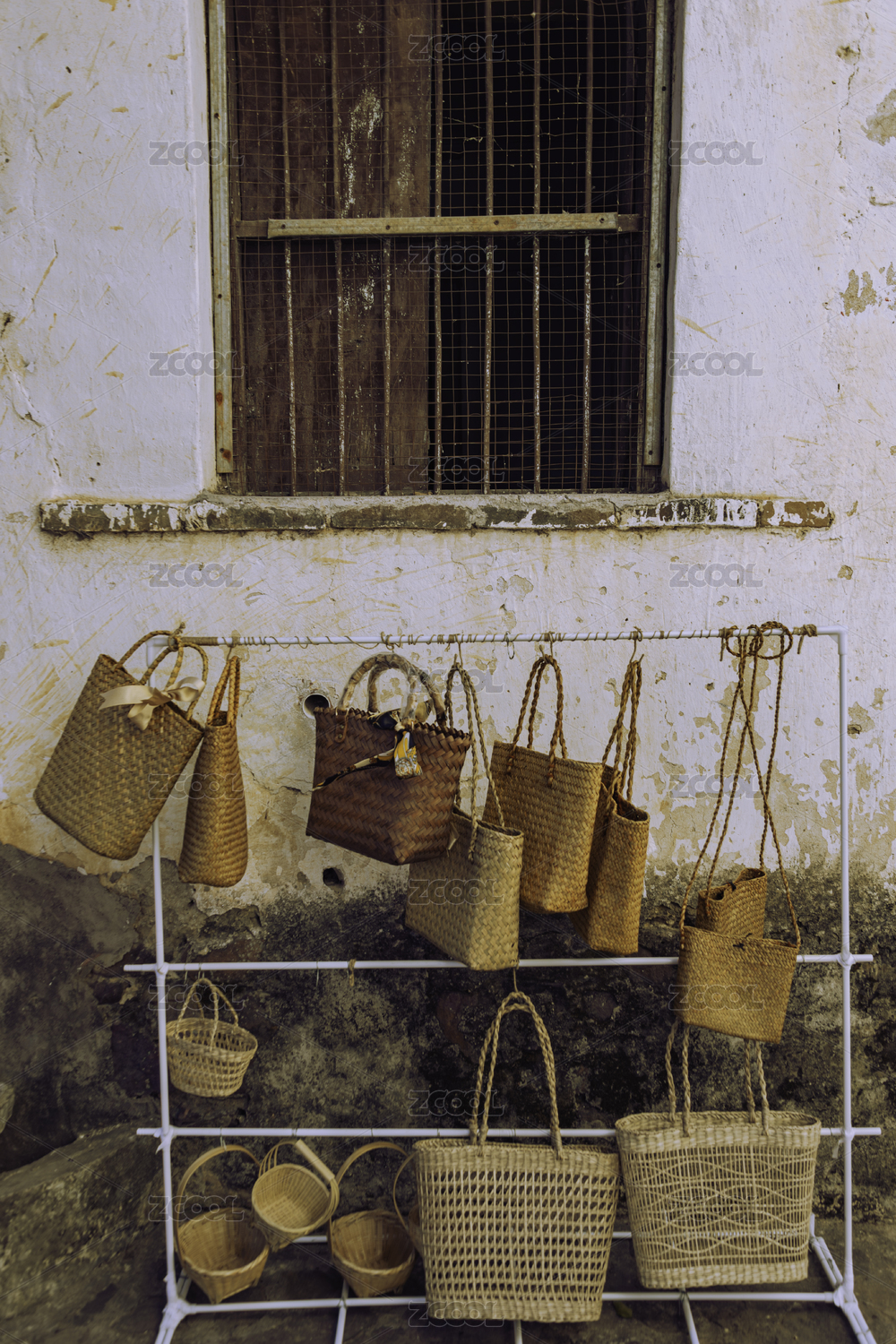 地窖里存放的編織藤筐和農(nóng)用工具特寫