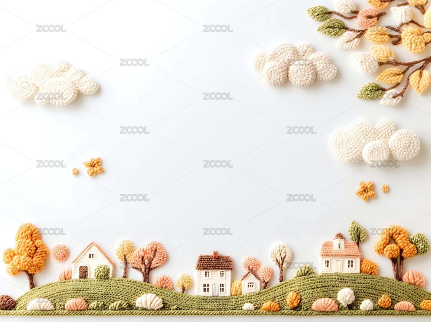 毛線編織風(fēng)格秋季風(fēng)景小鎮(zhèn)房屋背景
