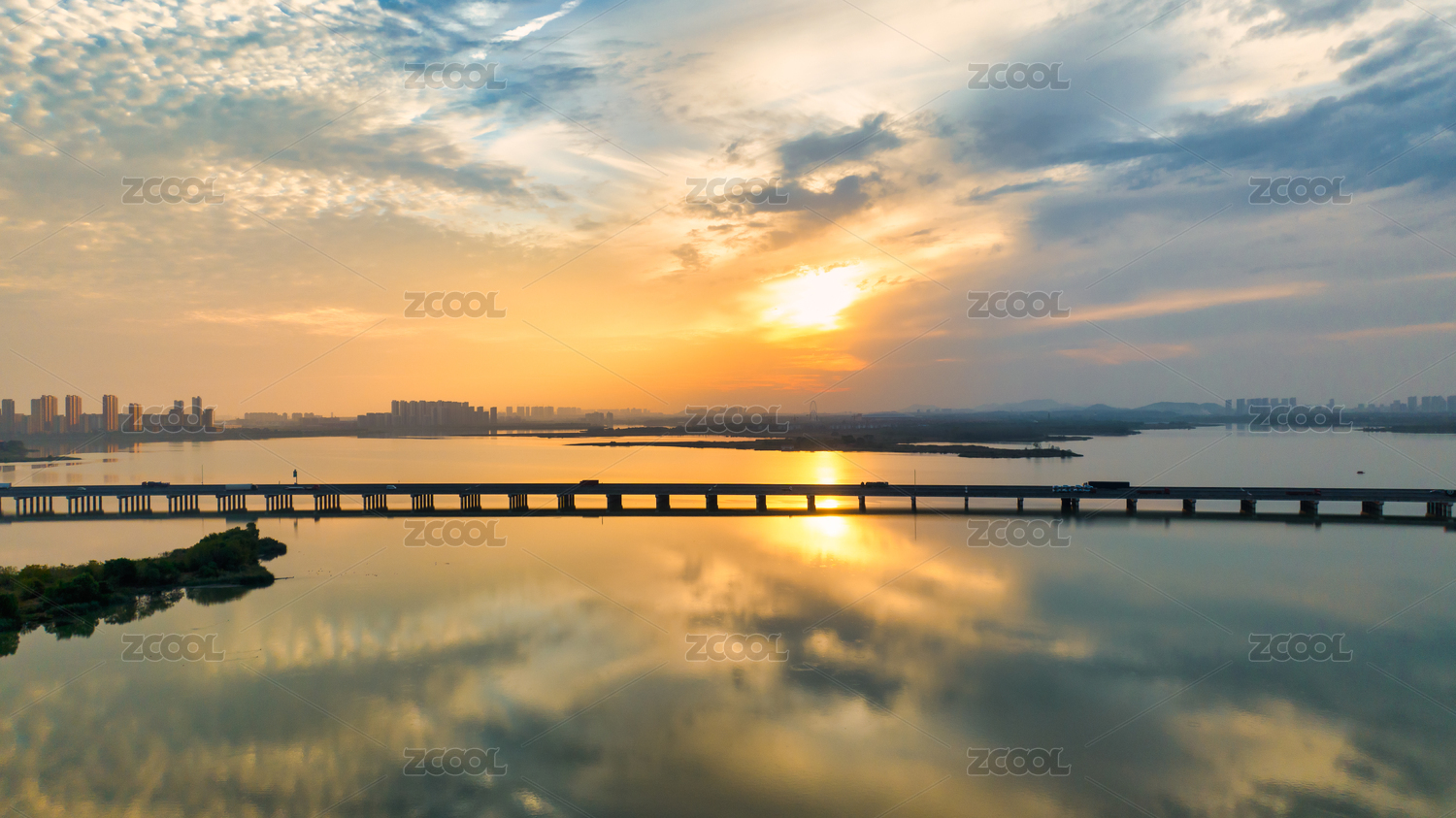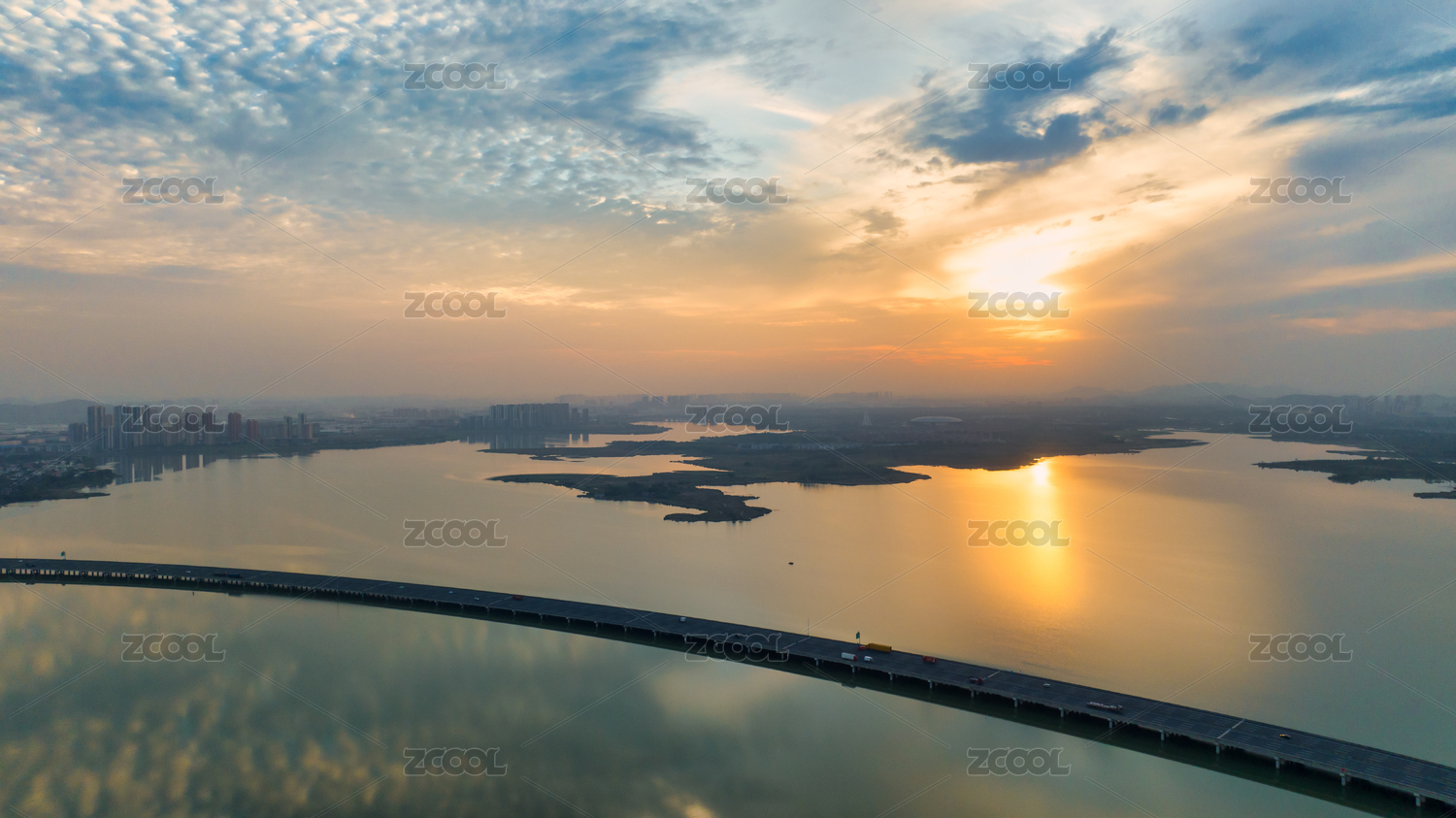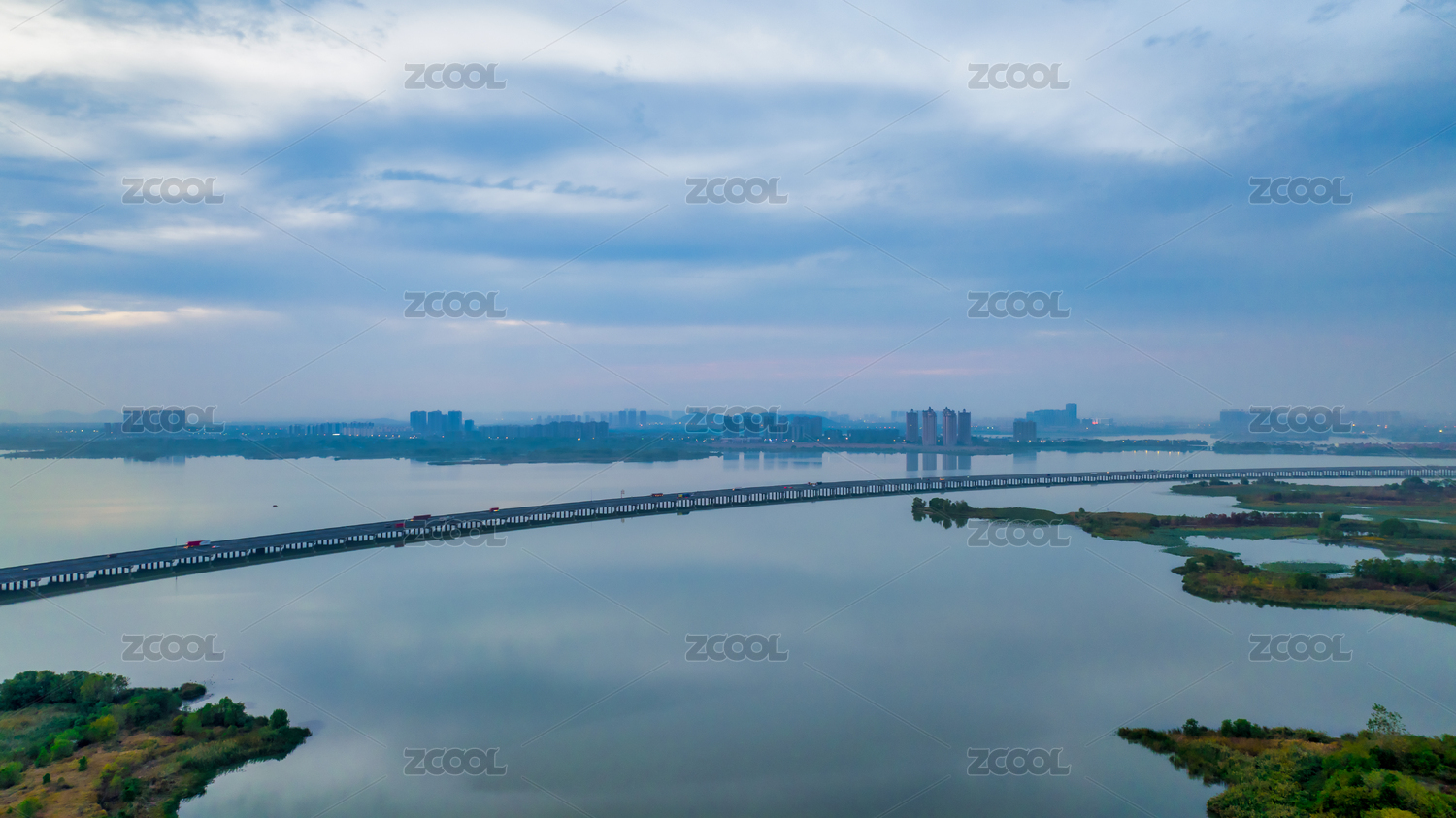 航拍武漢蔡甸區(qū)后官湖特大橋