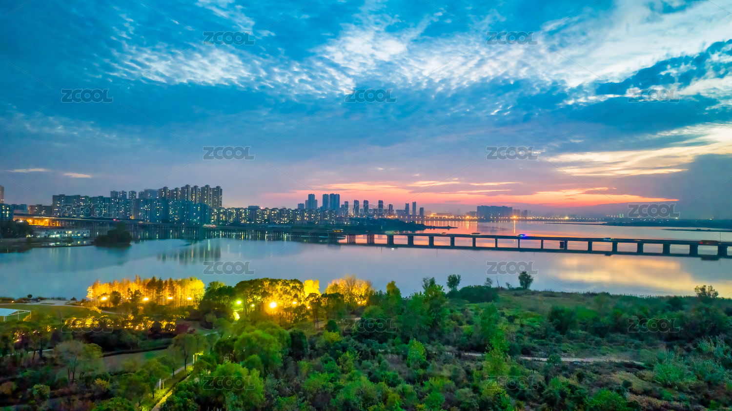 武漢蔡甸區(qū)后官湖湖畔夜晚風(fēng)光