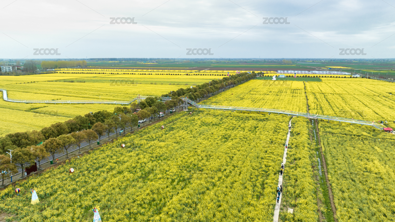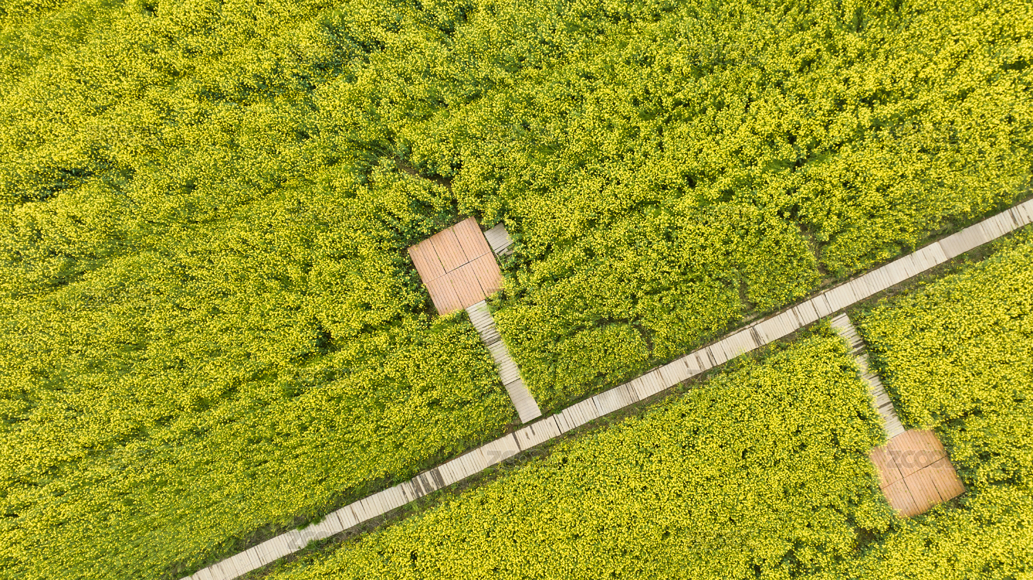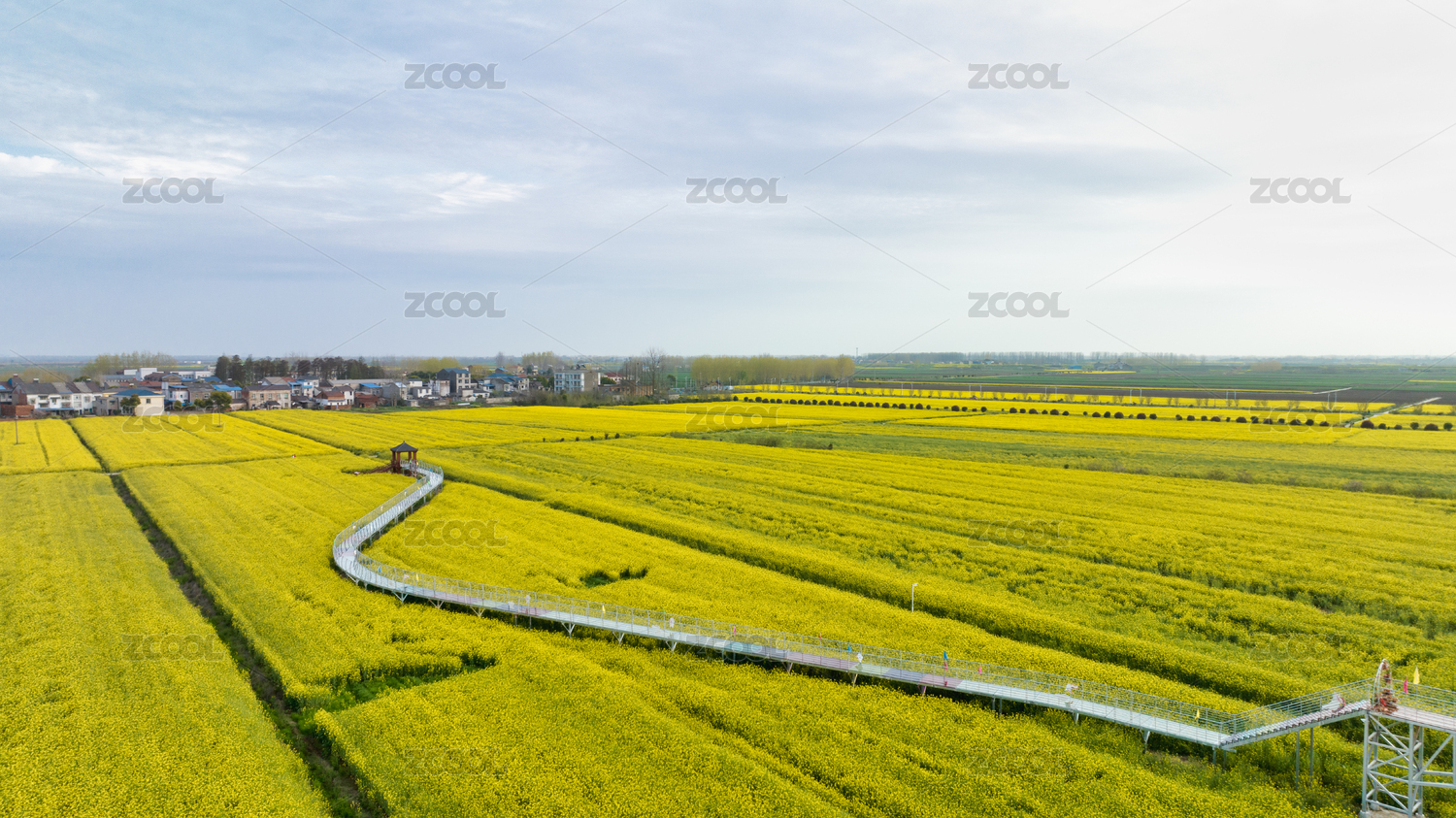 湖北武漢蔡甸消泗油菜花海里的木棧橋