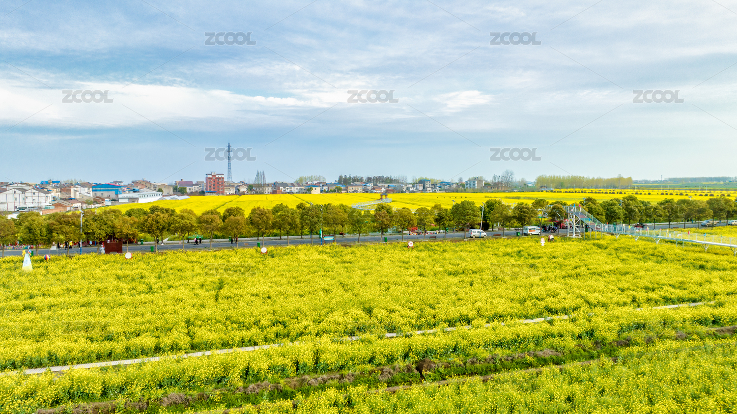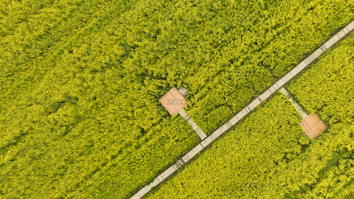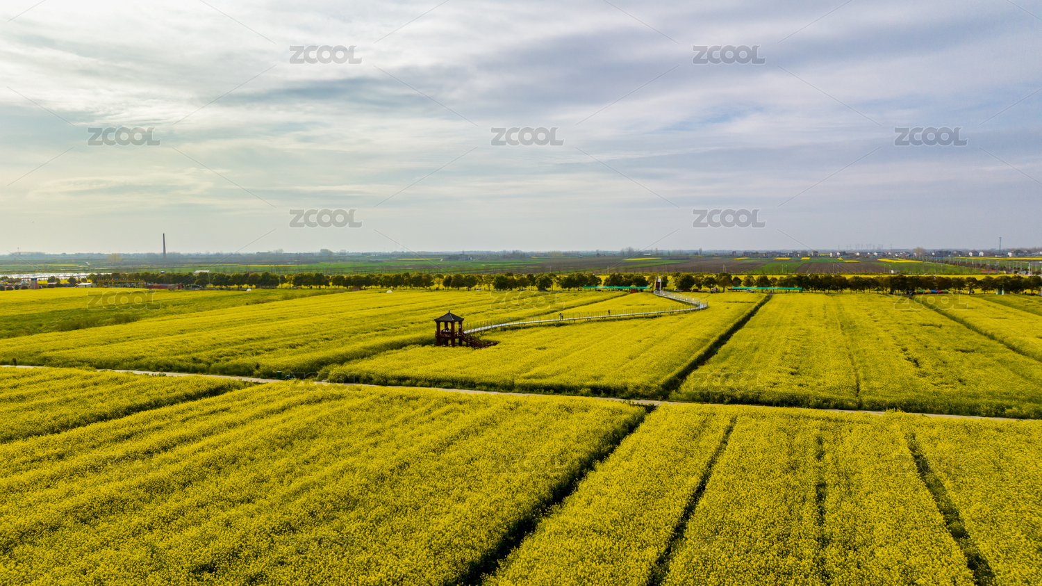 湖北武漢蔡甸消泗油菜花海里的木棧橋