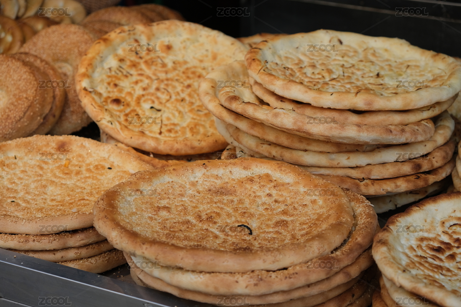 堆在一起的中國新疆傳統(tǒng)特色主食面食美食馕