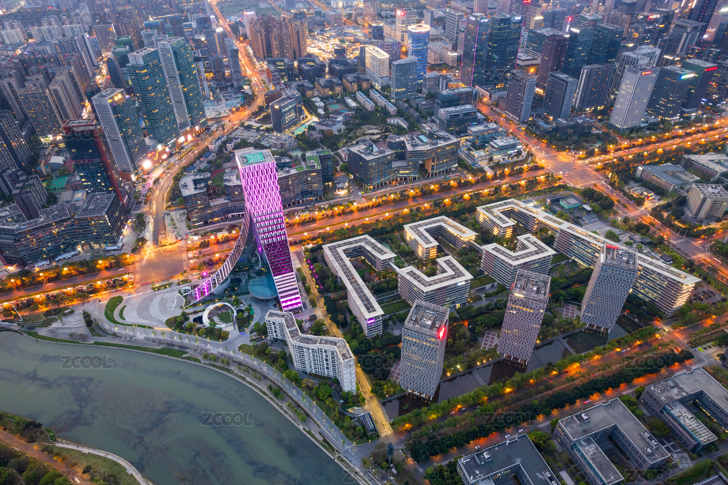 成都高新區(qū)天府軟件園黃昏時刻航拍