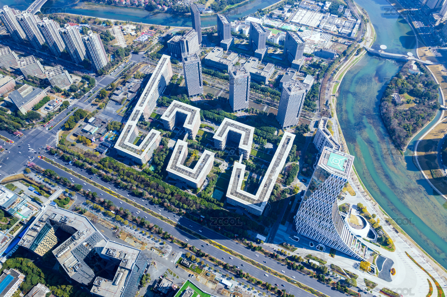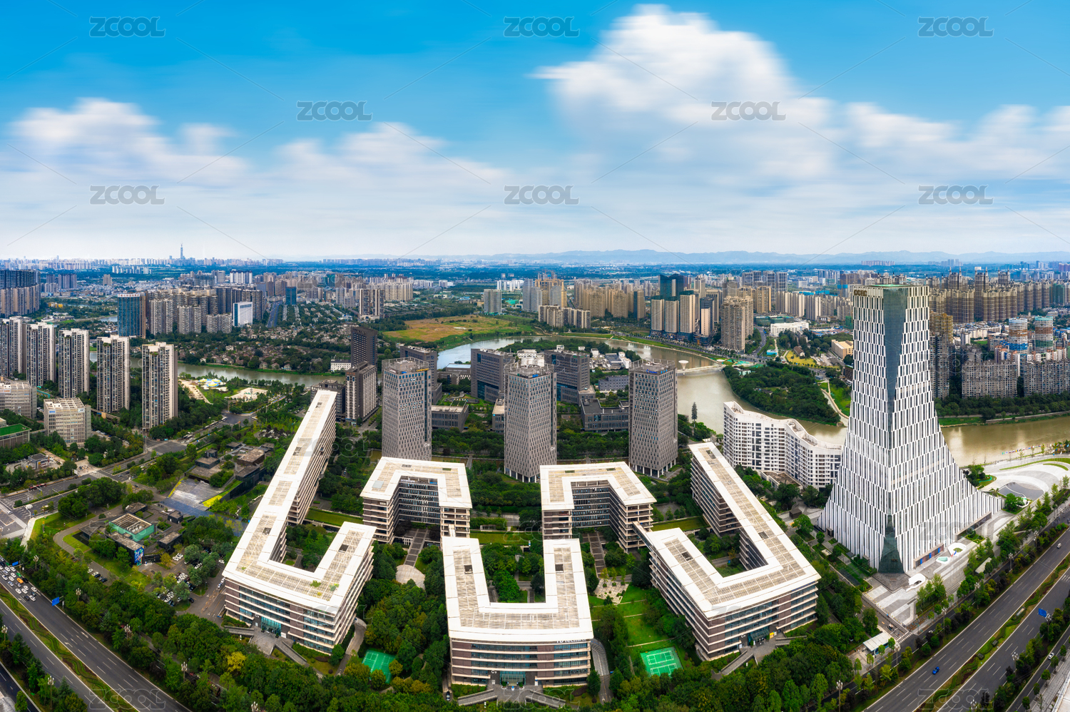 四川成都高新歐洲中心天府軟件園建筑航拍圖
