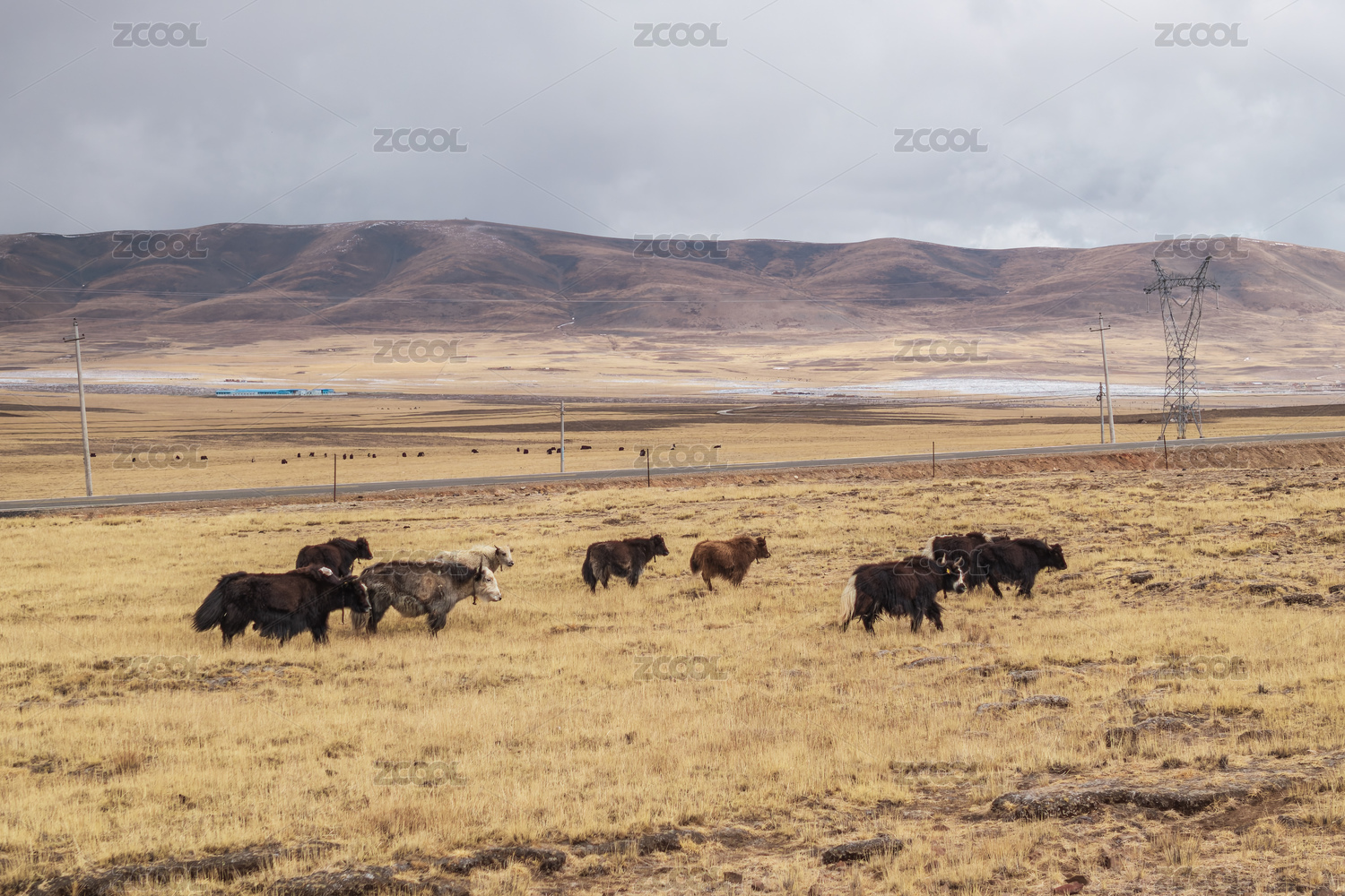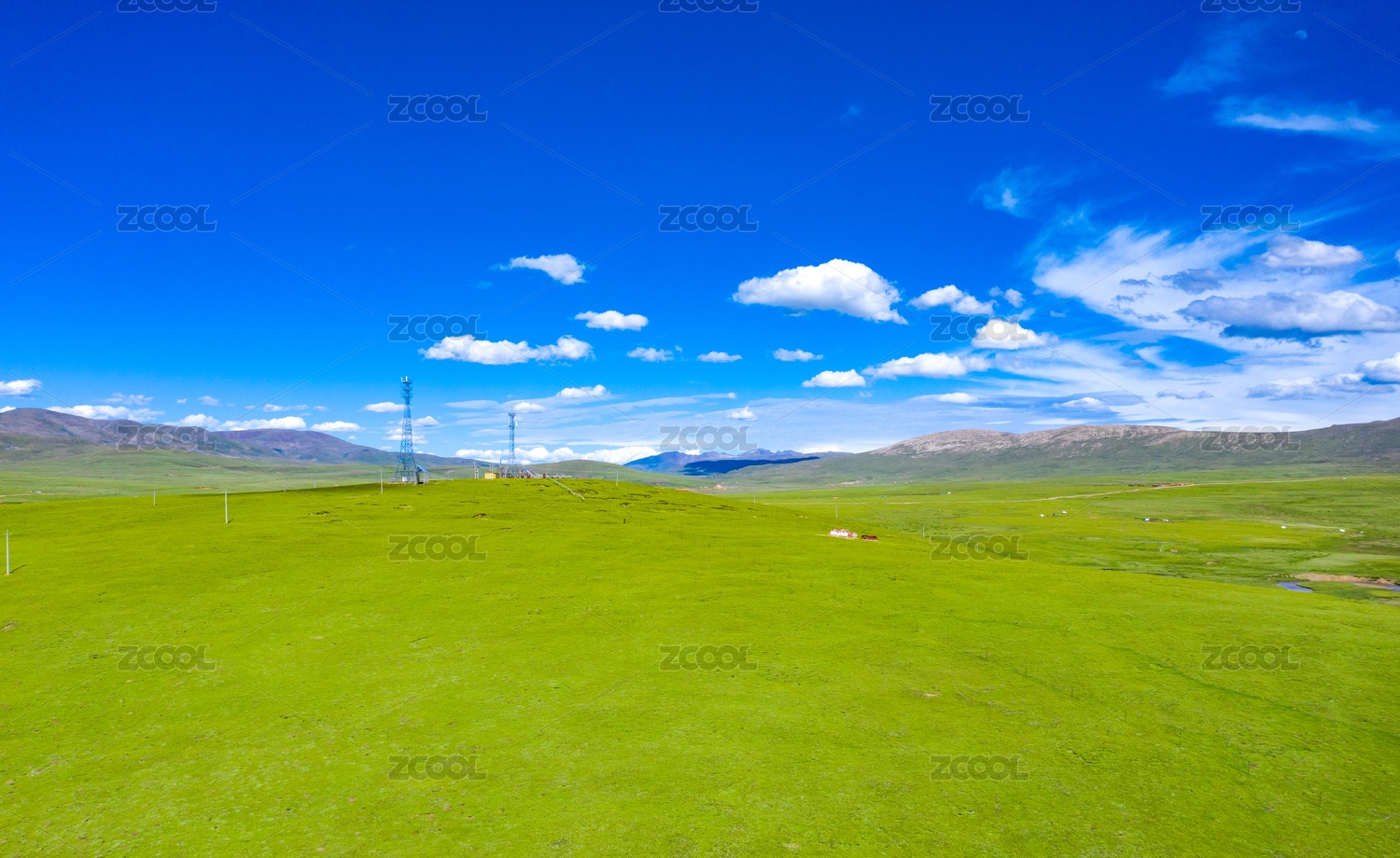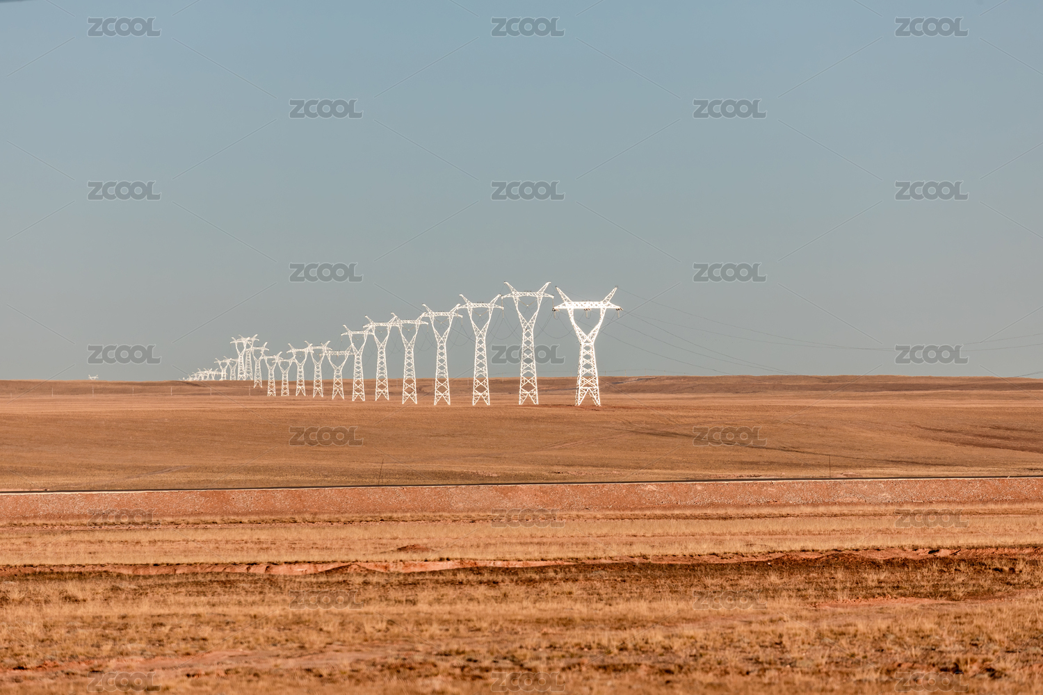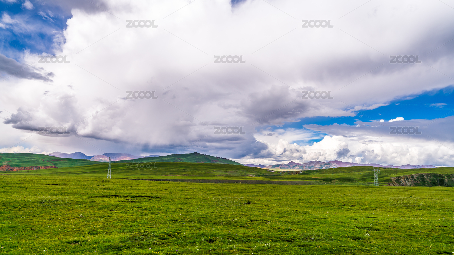 中國西藏那曲草原上的輸電塔