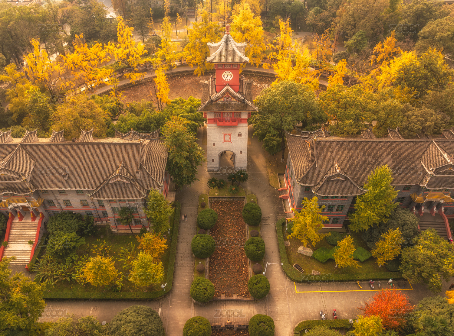 中國成都四川大學(xué)華西校區(qū)秋季航拍圖