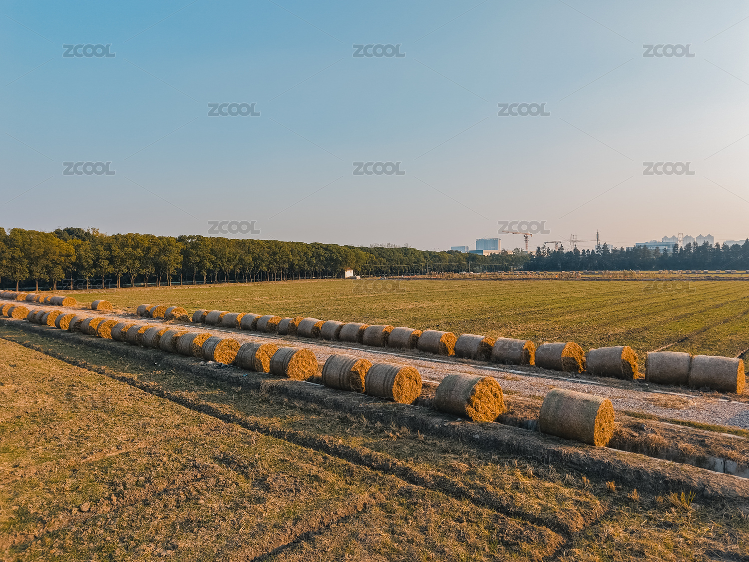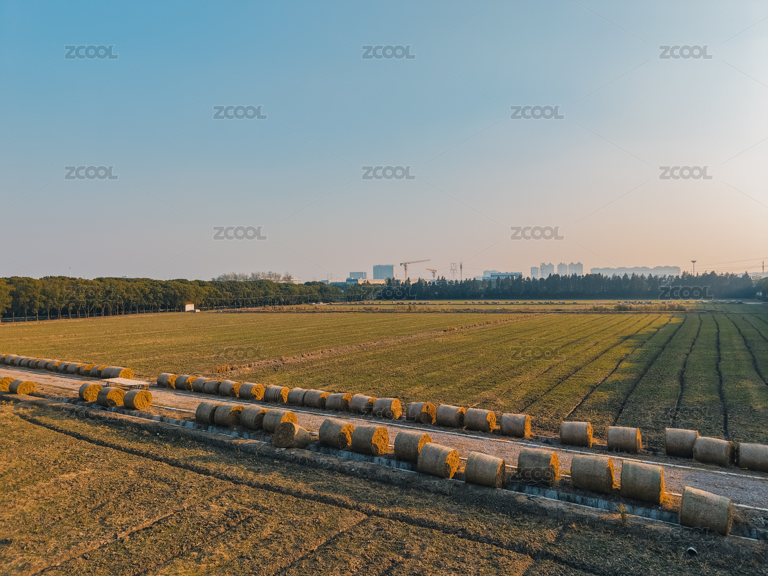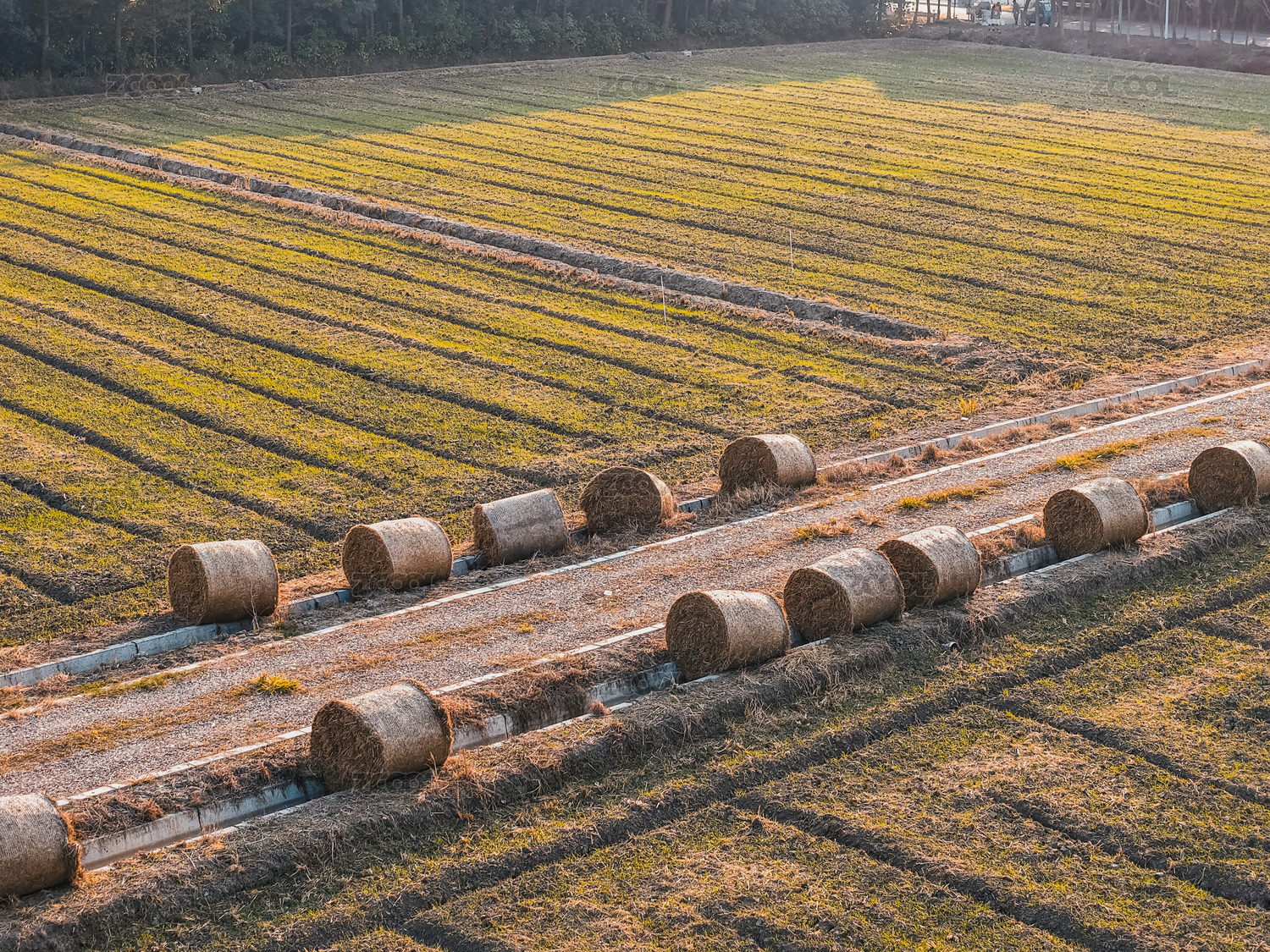 航拍農田草垛