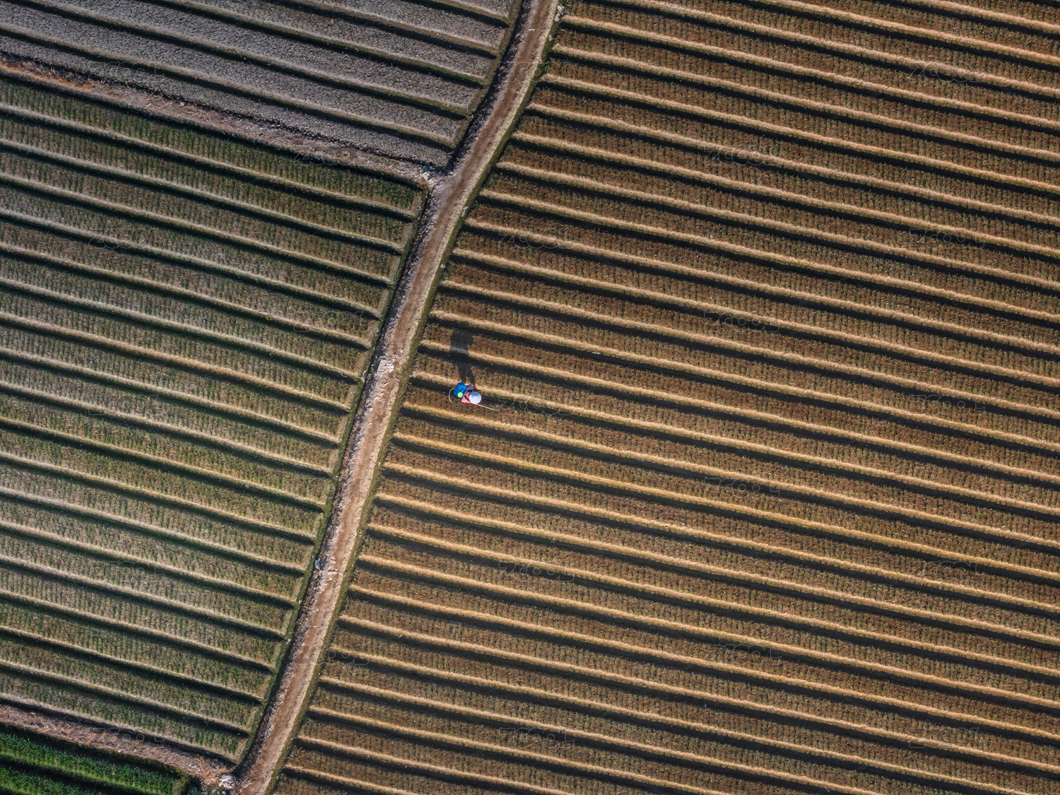 航拍農田里勞作的人