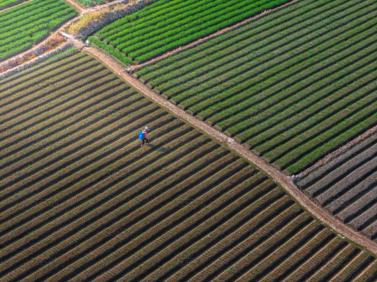 航拍農田勞作場景