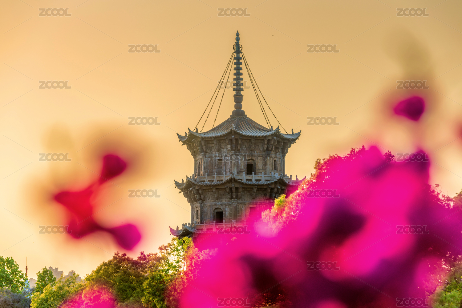 中國福建泉州古城開元寺東西塔日落風(fēng)光