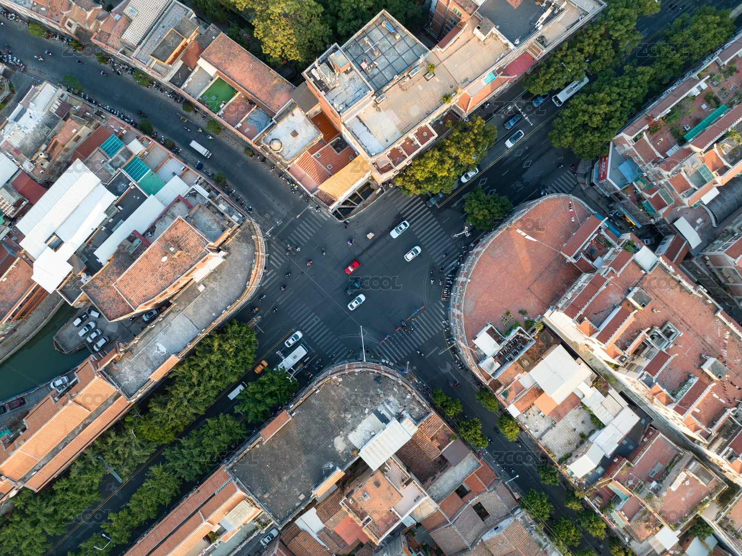 俯瞰清晨福建泉州古城街道風(fēng)景
