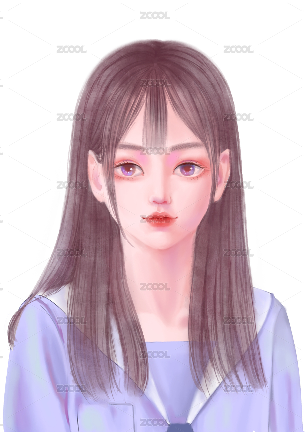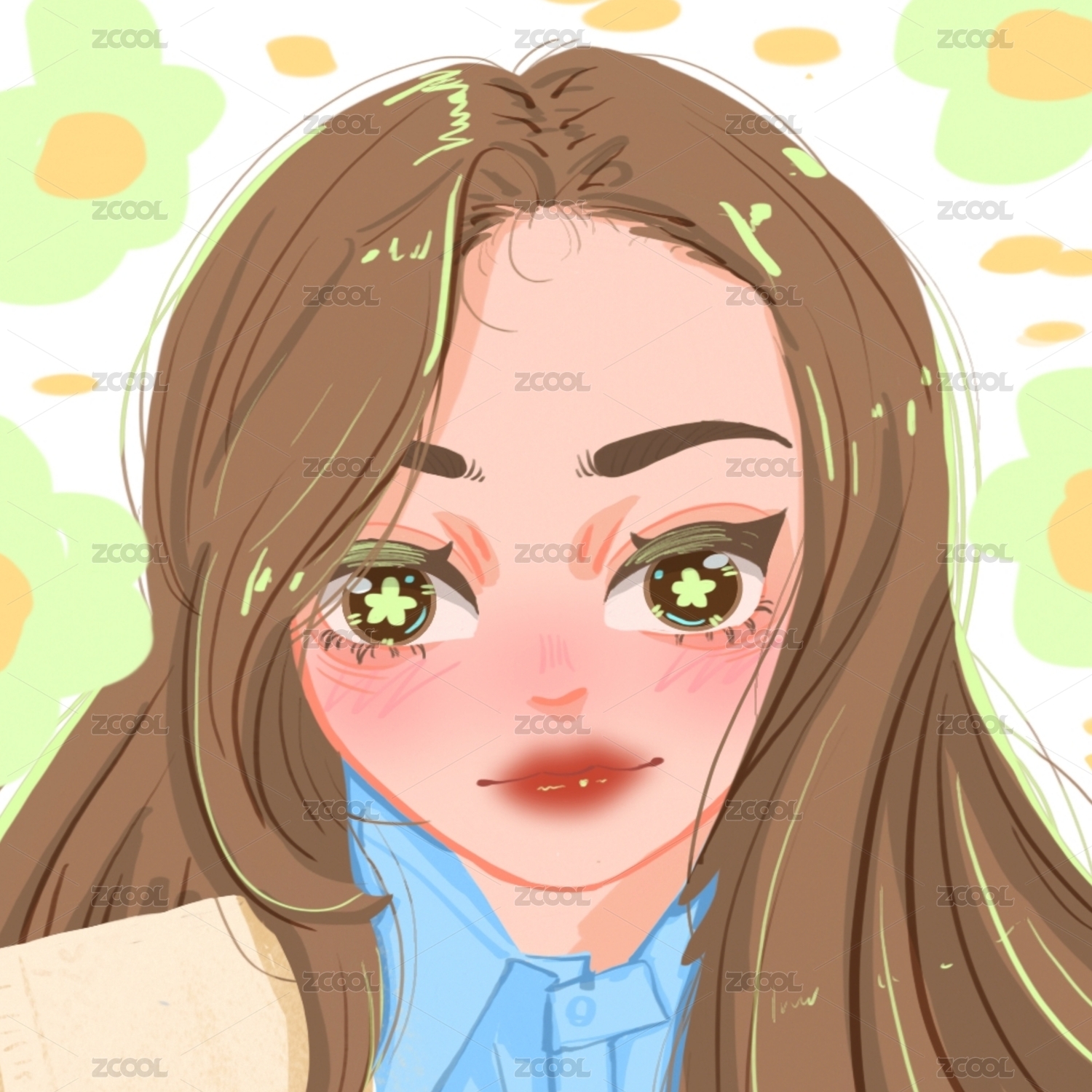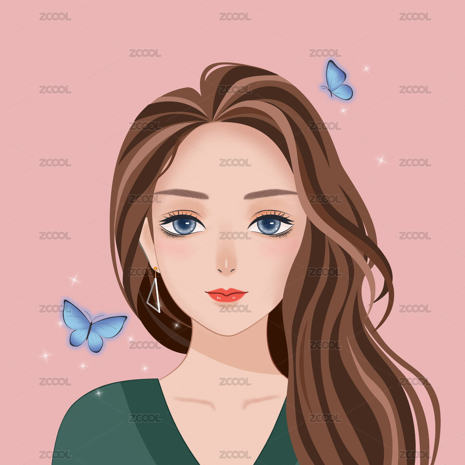 正面紅棕色長發(fā)女生頭像