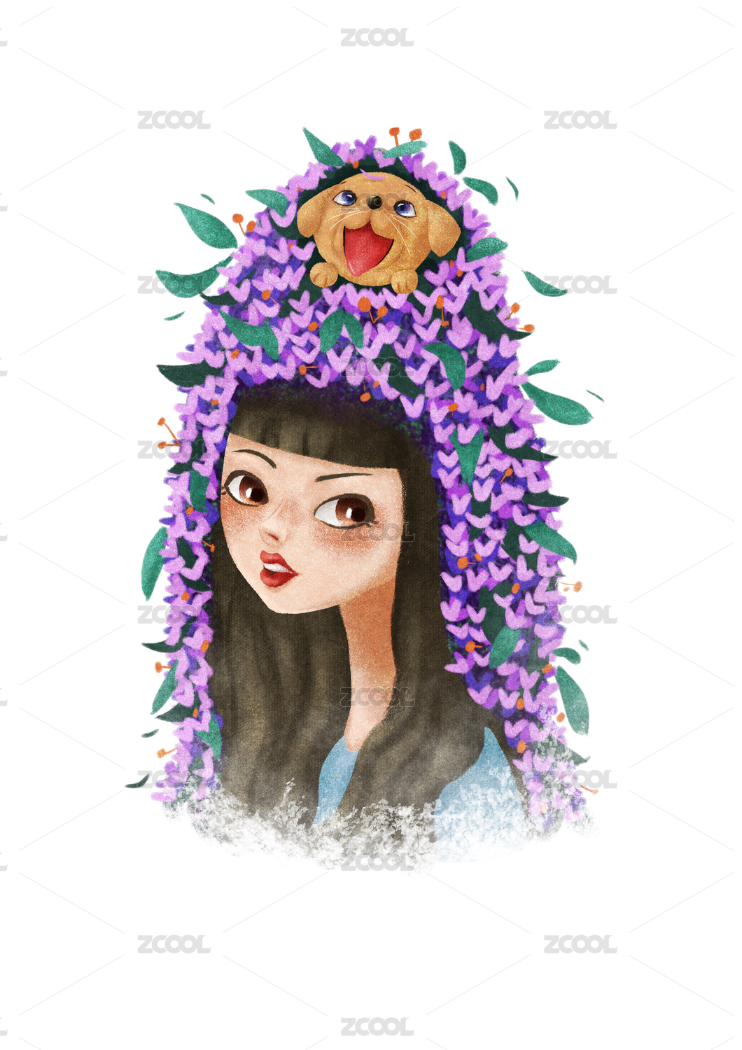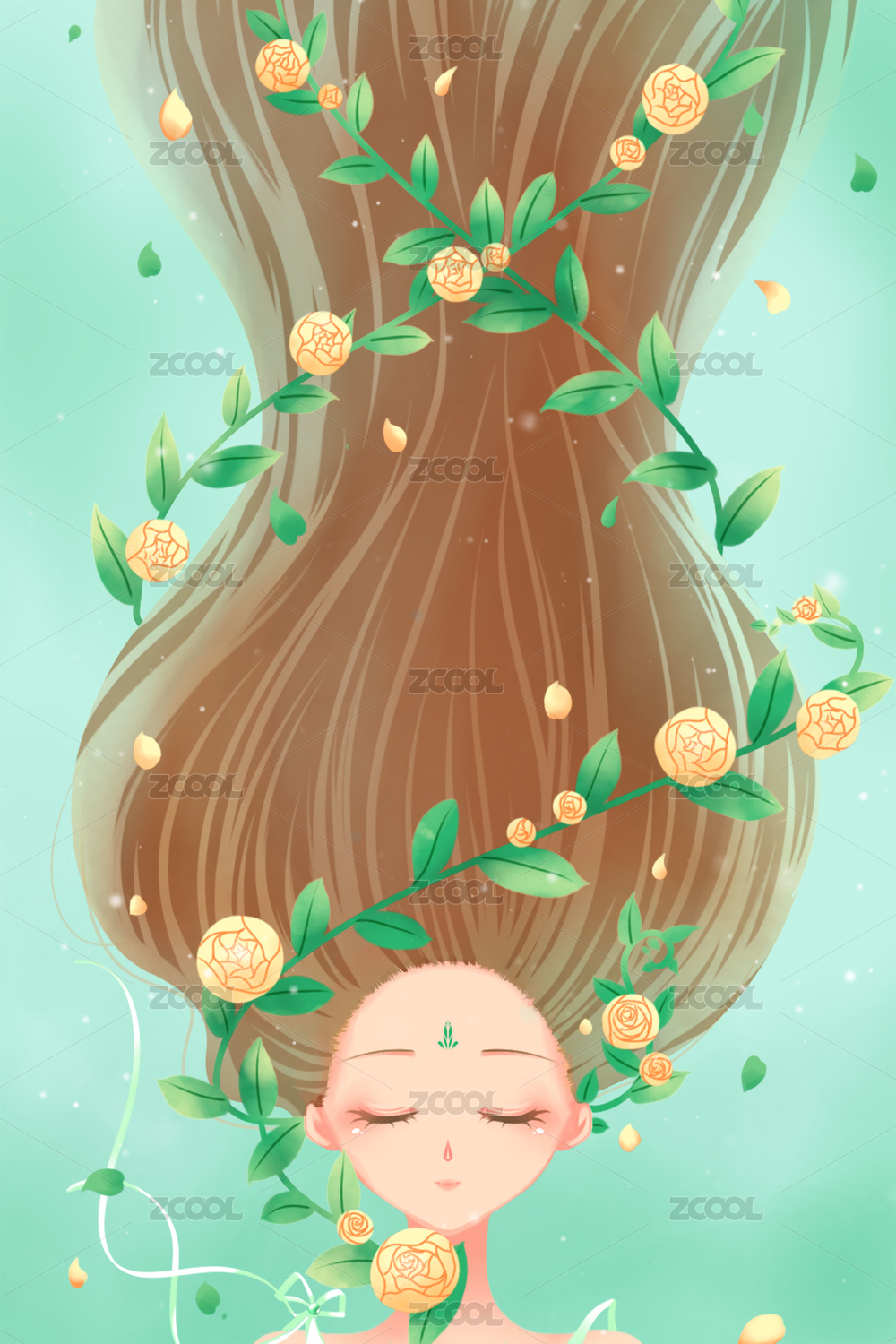 女孩的長發(fā)與鮮花,唯美春季夏季插畫海報(bào)