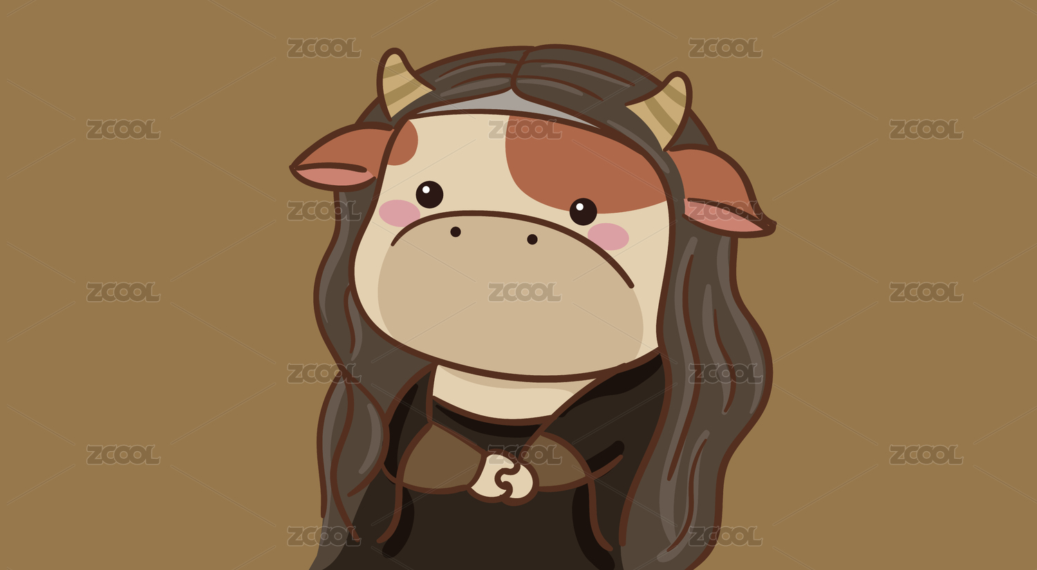 插畫卡通蒙拉麗莎牛牛