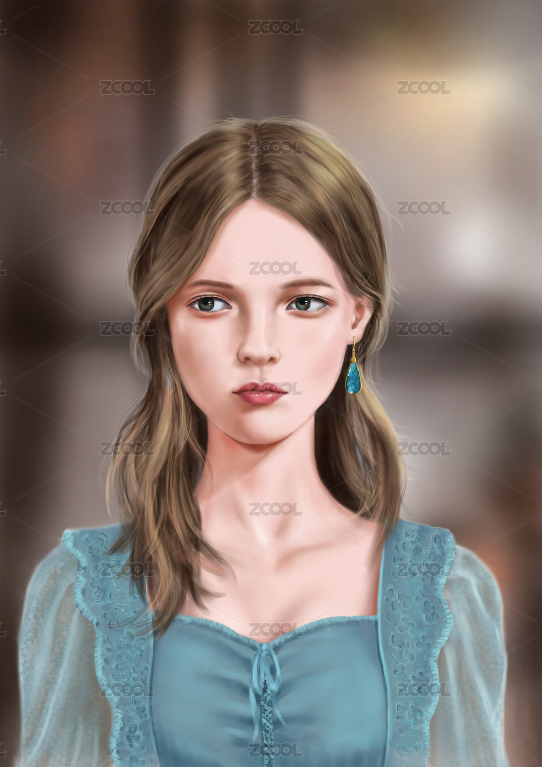戴水晶耳環(huán)的棕色長發(fā)女孩