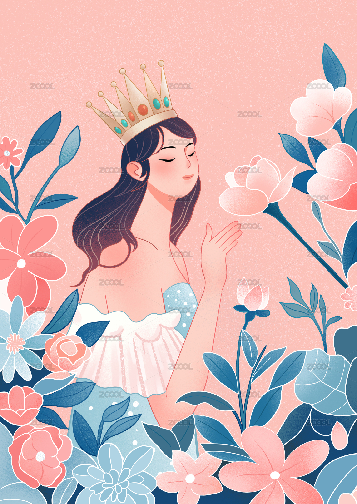 婦女節(jié)女性花叢插畫