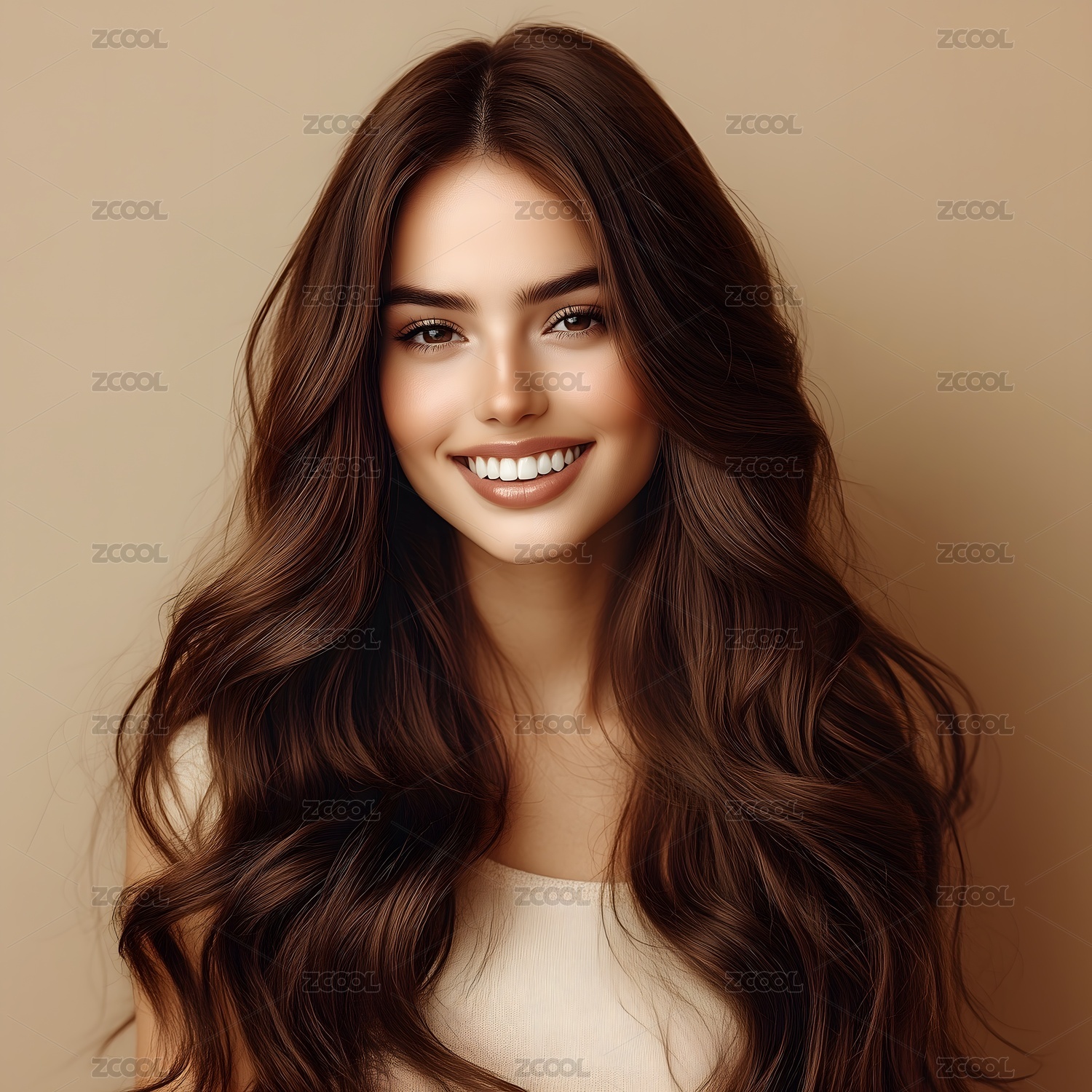 擁有濃密、波浪形深棕色長發(fā)的年輕女子
