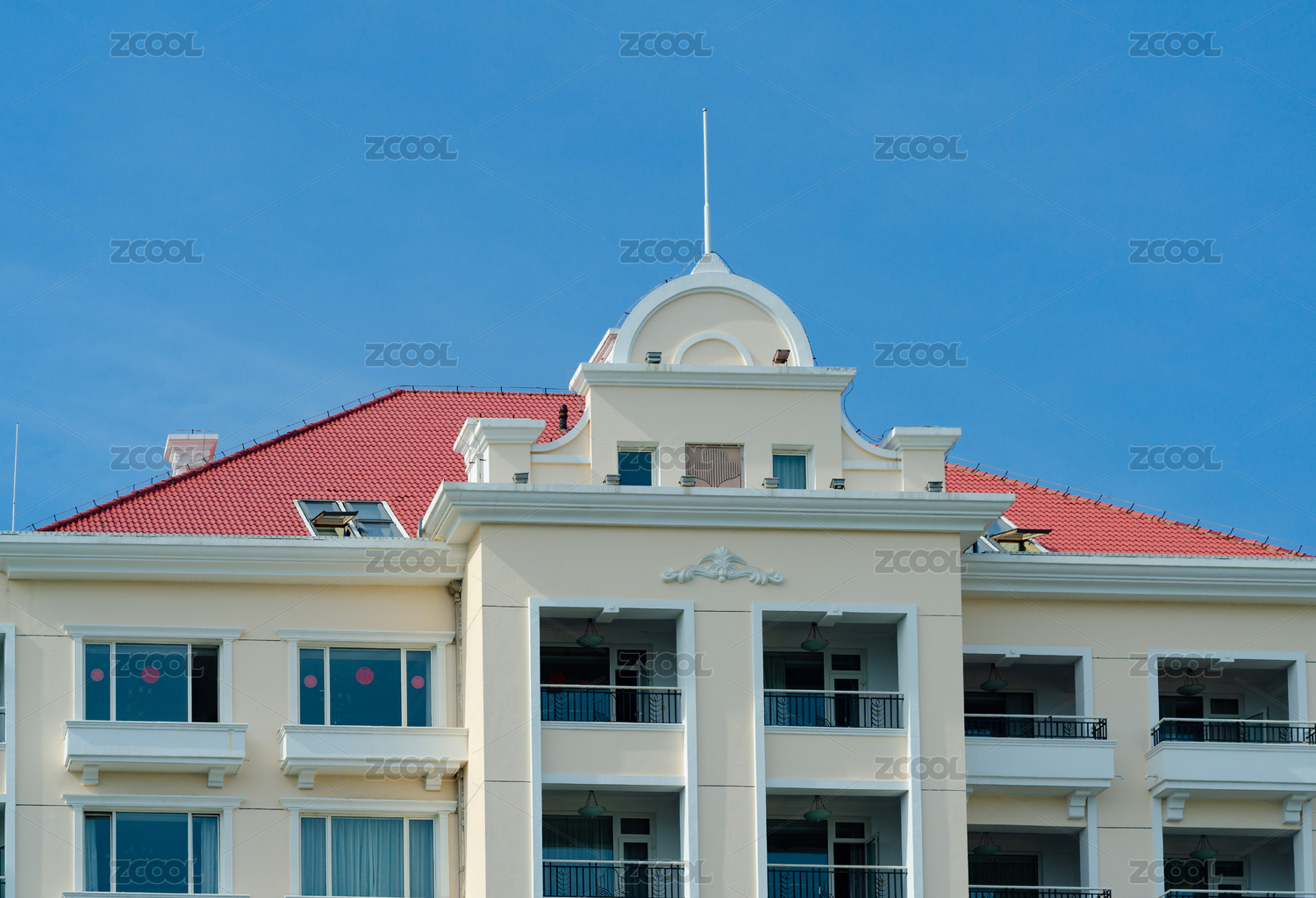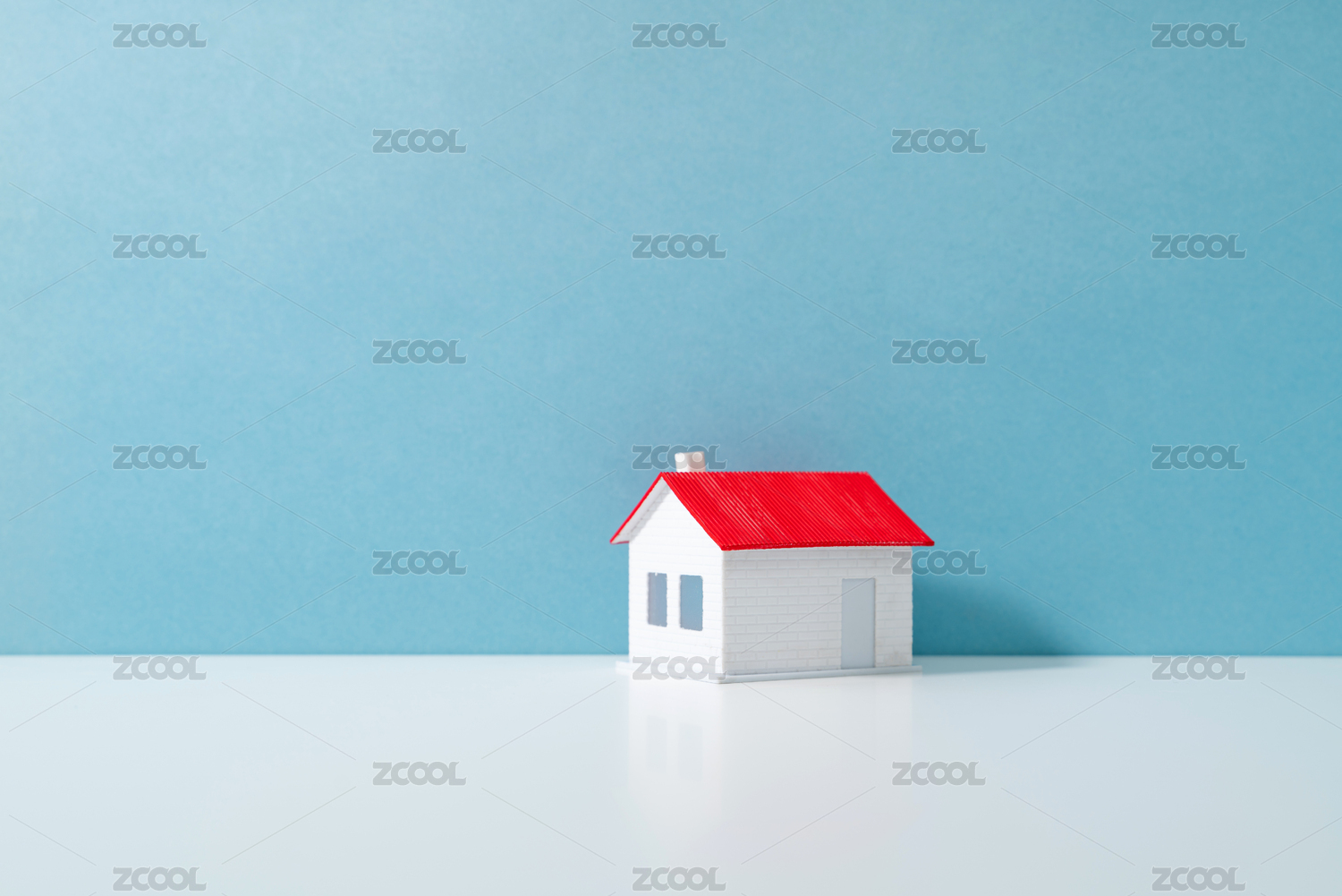 藍(lán)色背景前,紅屋頂?shù)姆课菽P?/div>