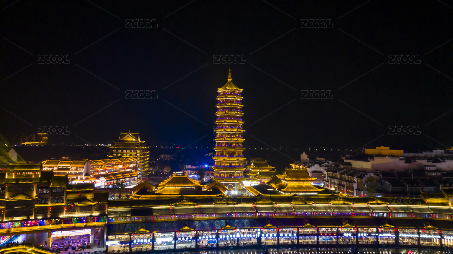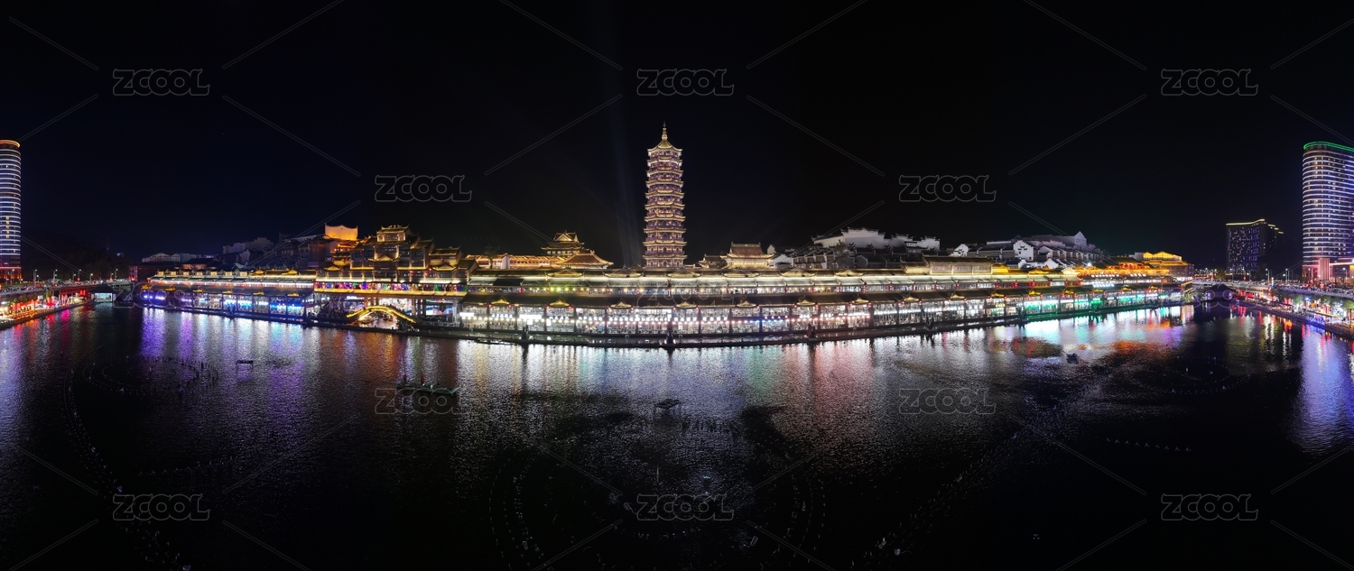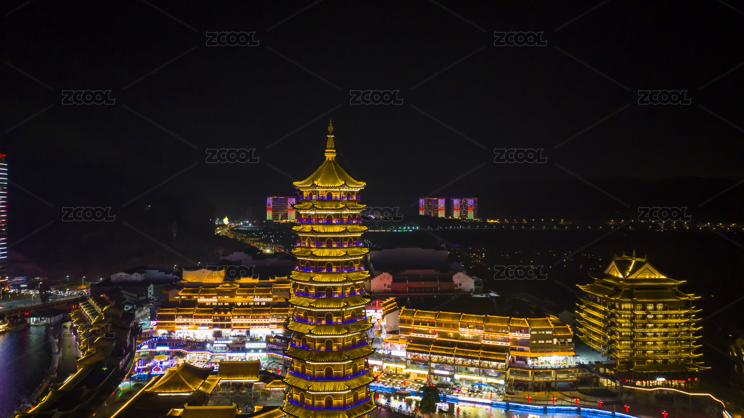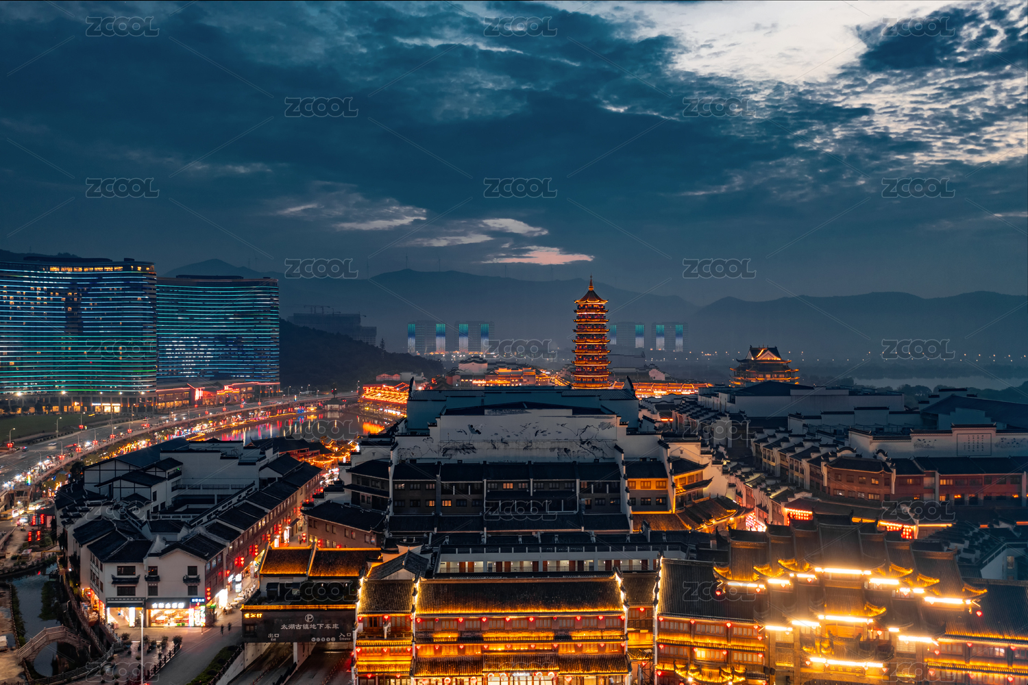 浙江湖州龍之夢(mèng)太湖古鎮(zhèn)夜晚航拍