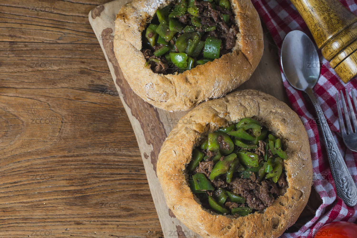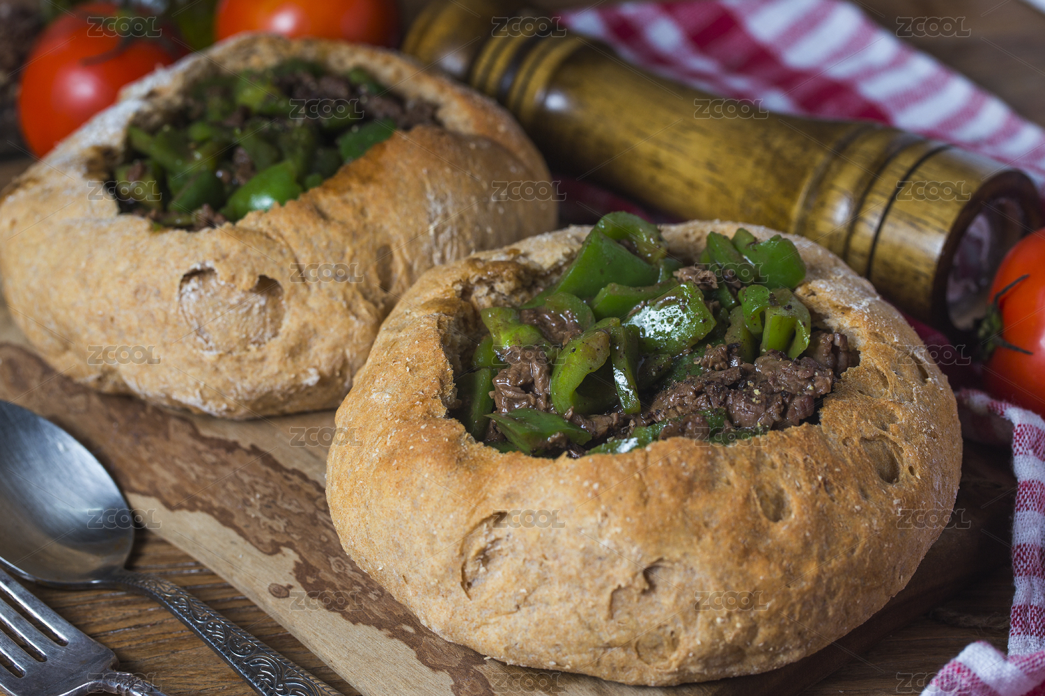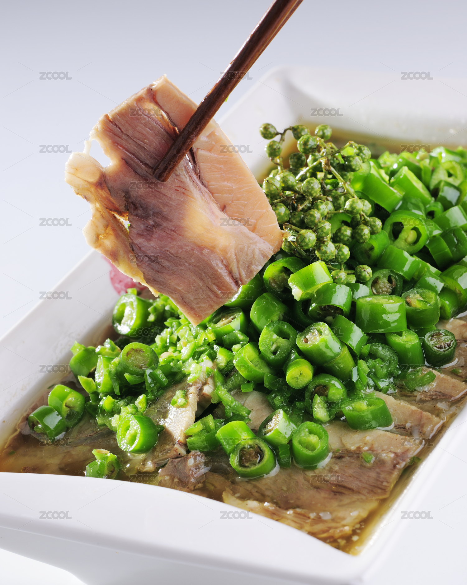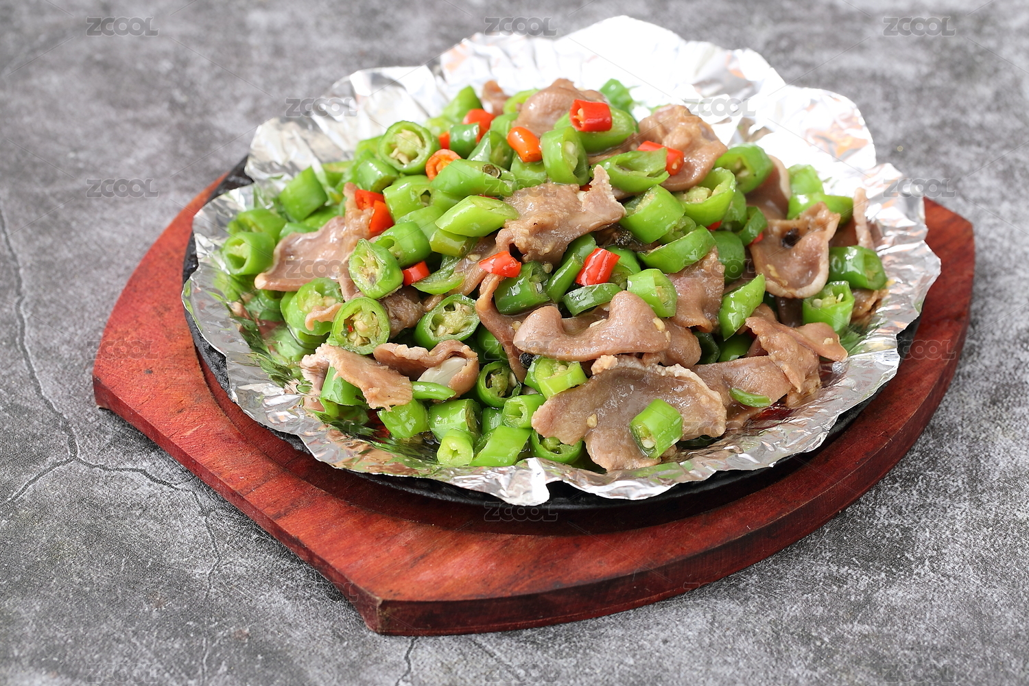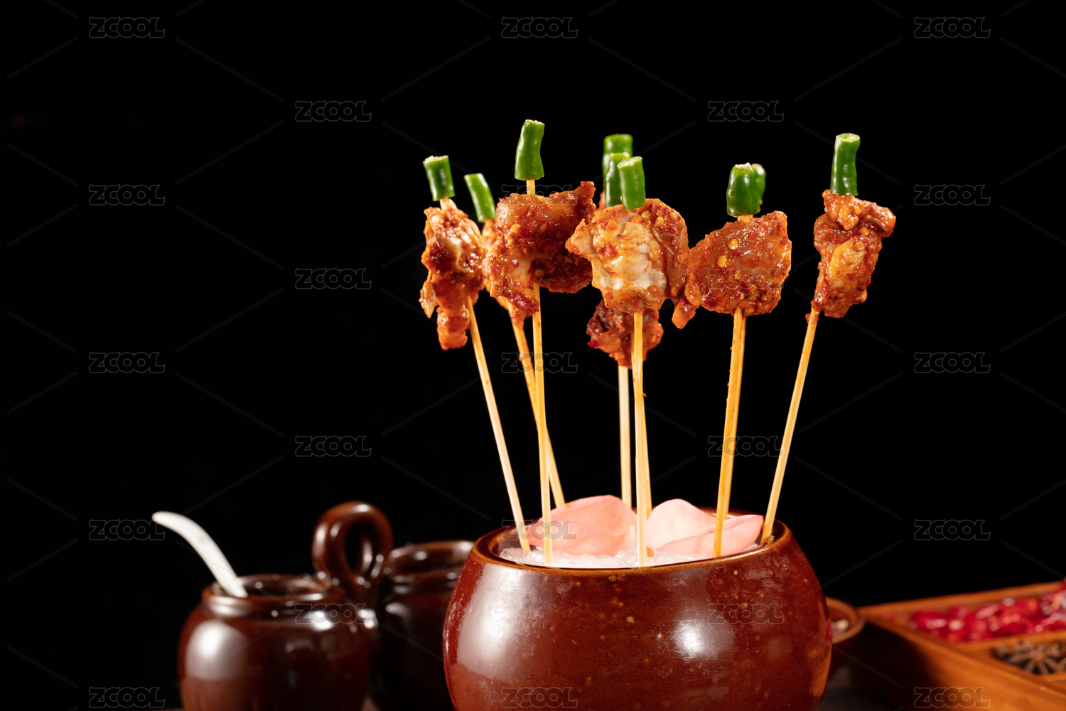 陶罐里插在冰上的重慶火鍋竹簽青椒牛肉