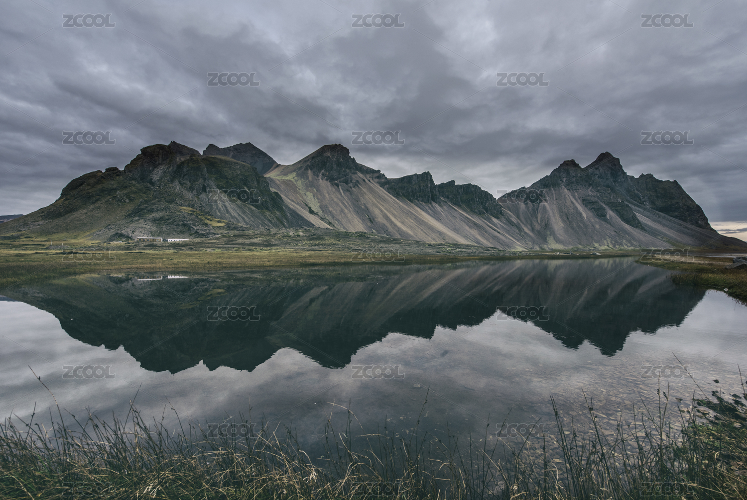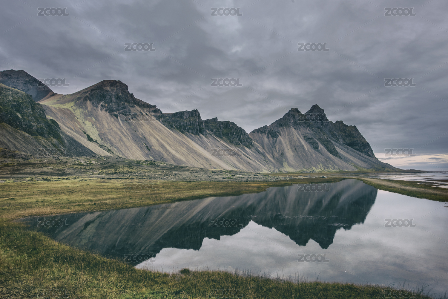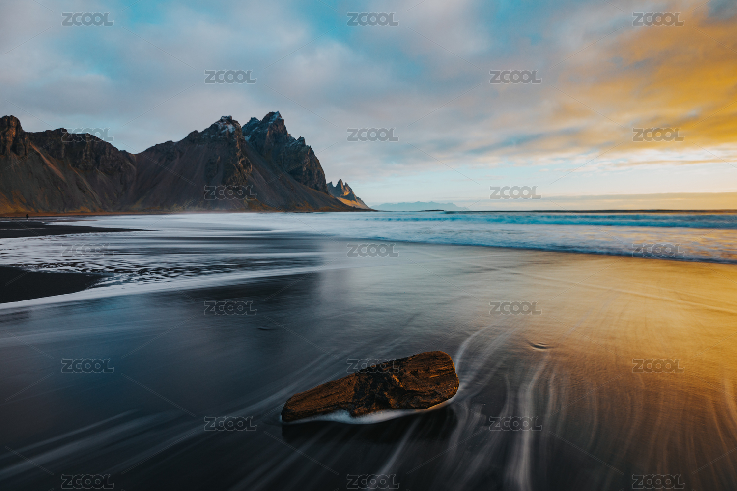 雄偉壯觀的冰島蝙蝠山vestrahorn日出水面倒影