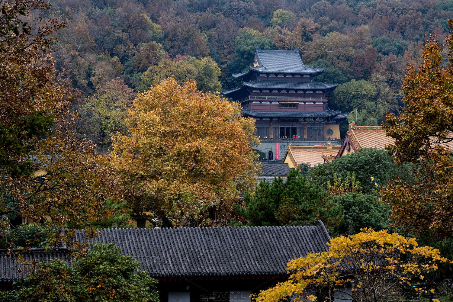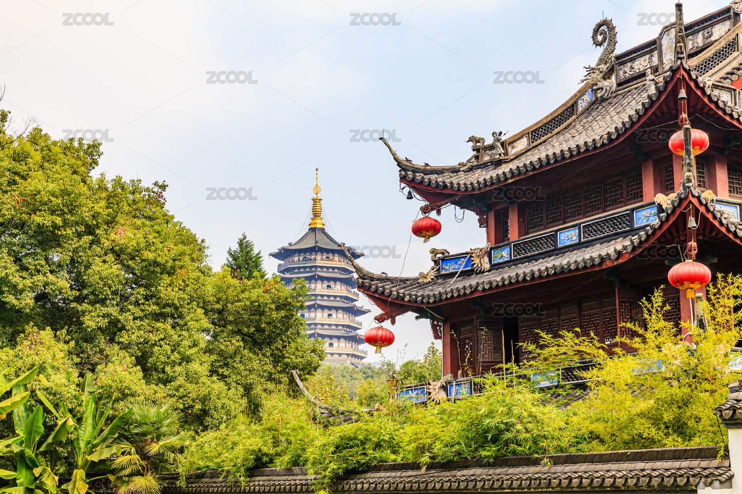 中國(guó)浙江杭州西湖畔交凈慈寺傳統(tǒng)建筑