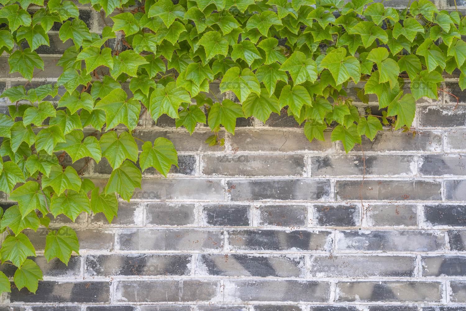 青磚墻上的綠色爬山虎