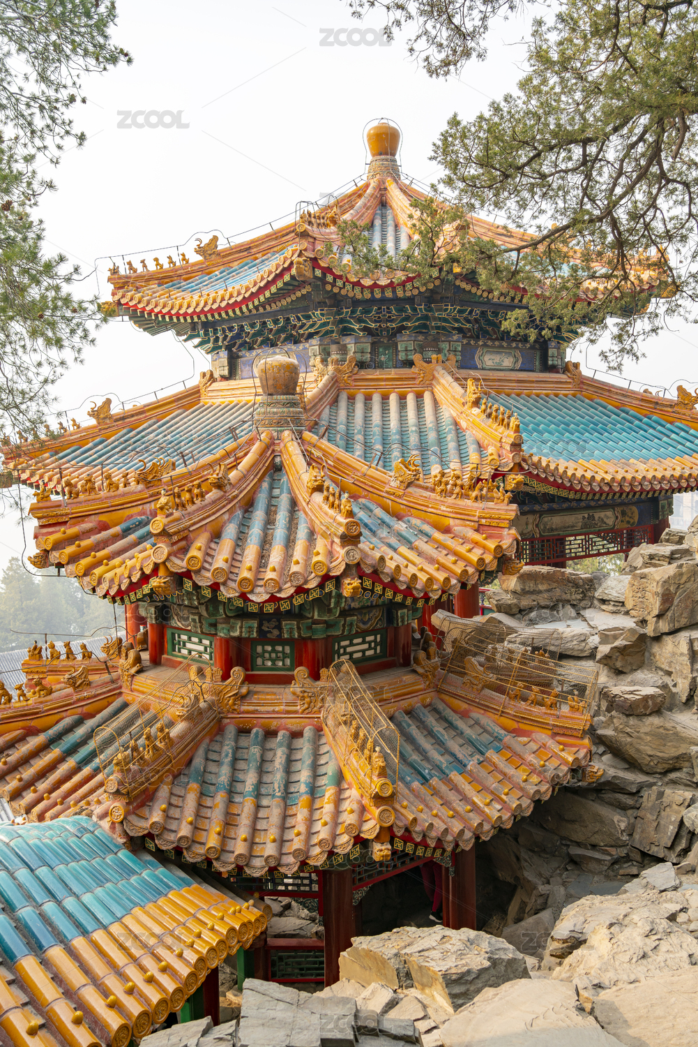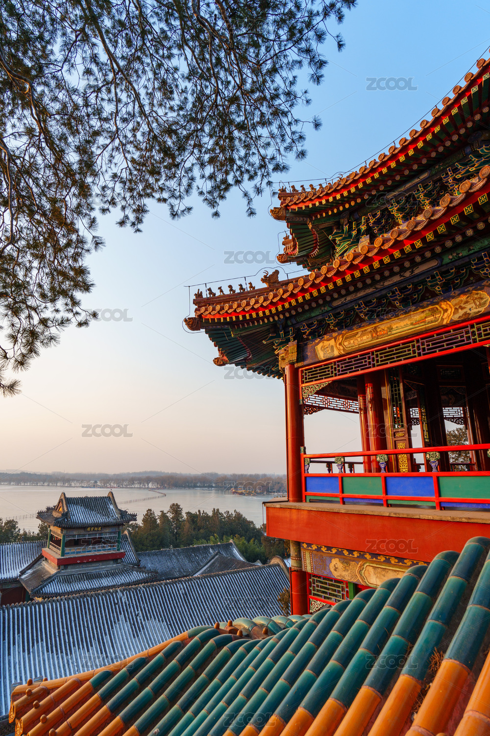 北京頤和園畫中游亭臺(tái)樓閣風(fēng)景